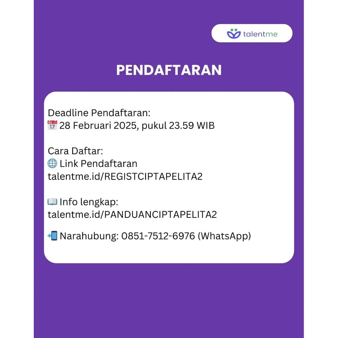 2. Pendaftaran melalui link https://talentme.id/REGISTCIPTAPELITA2