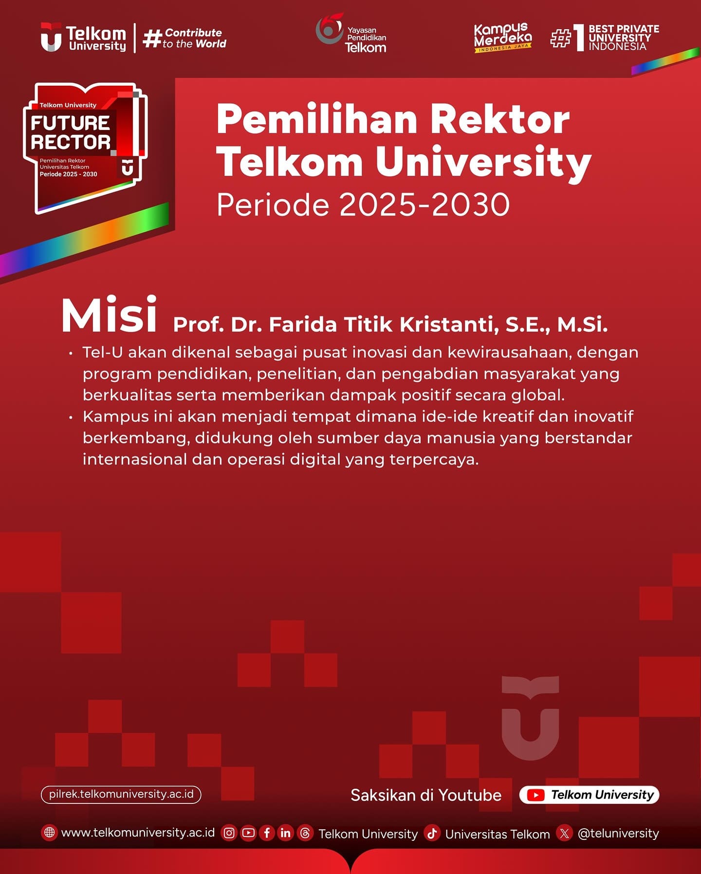 Berikut merupakan Visi dan Misi dari masing-masing Bakal Calon Rektor Telkom University periode 2025 – 2030