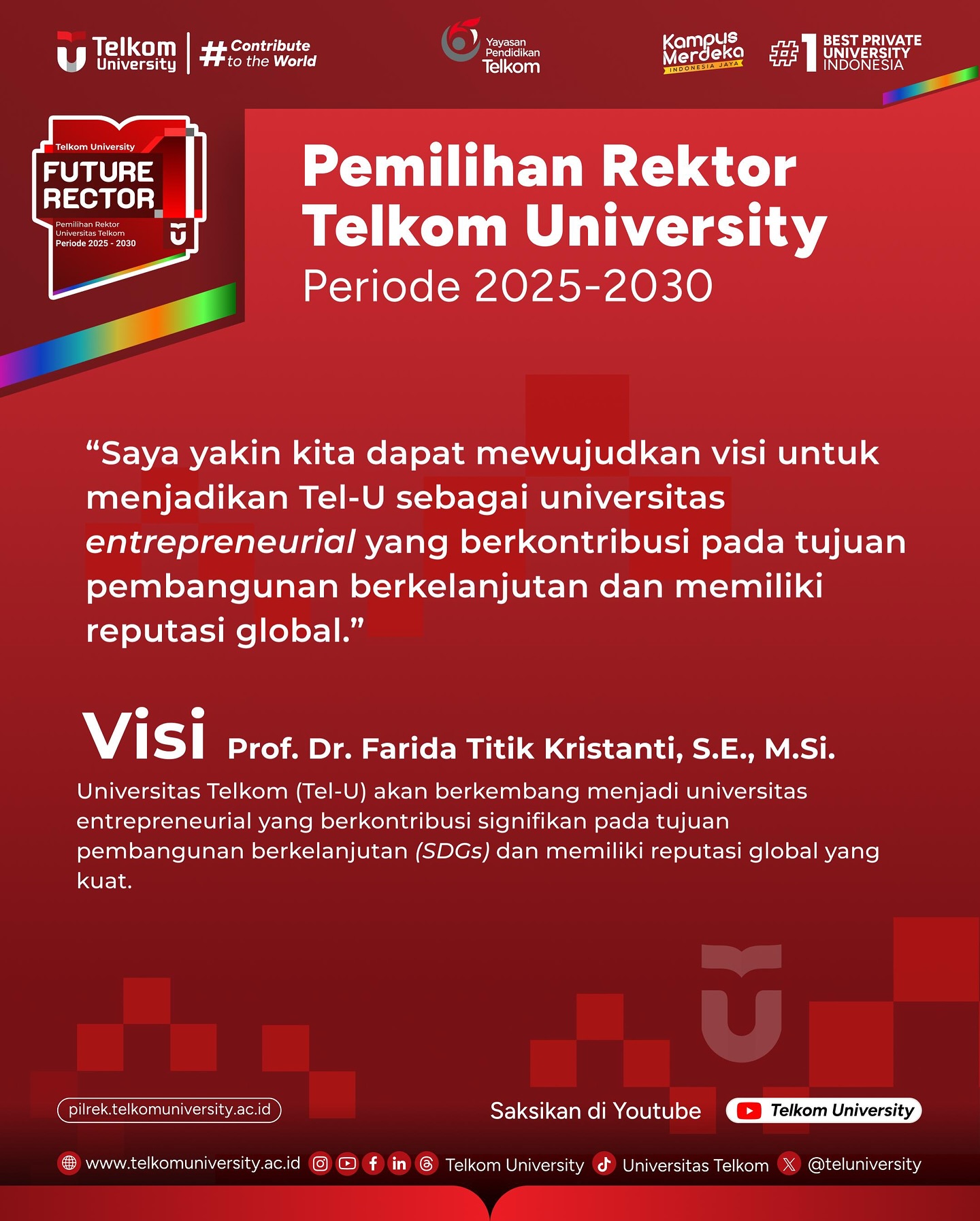Berikut merupakan Visi dan Misi dari masing-masing Bakal Calon Rektor Telkom University periode 2025 – 2030