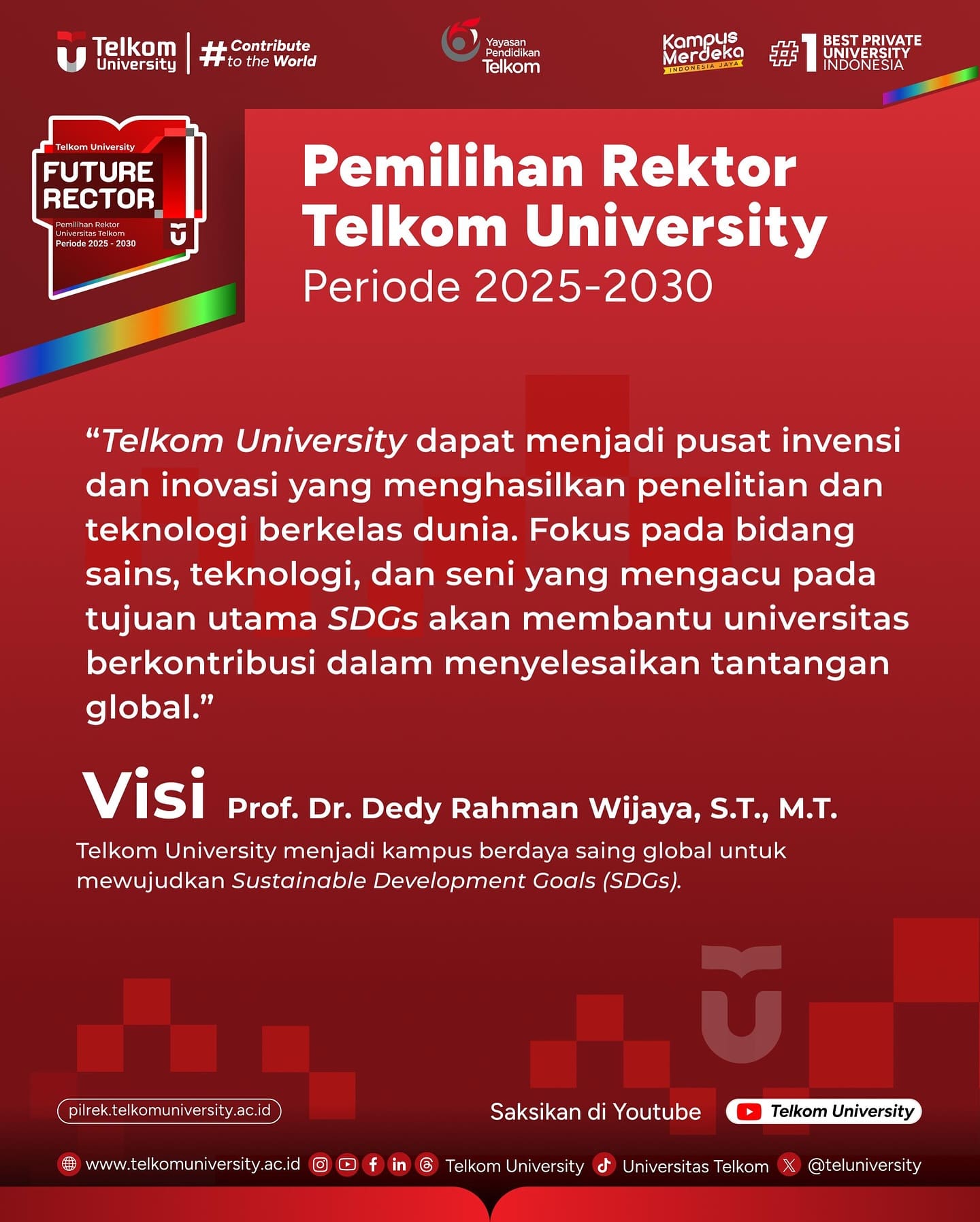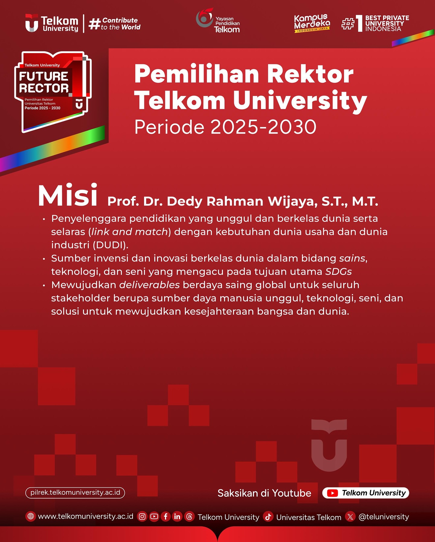 Berikut merupakan Visi dan Misi dari masing-masing Bakal Calon Rektor Telkom University periode 2025 – 2030