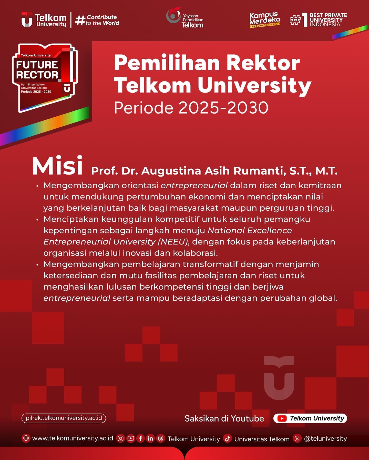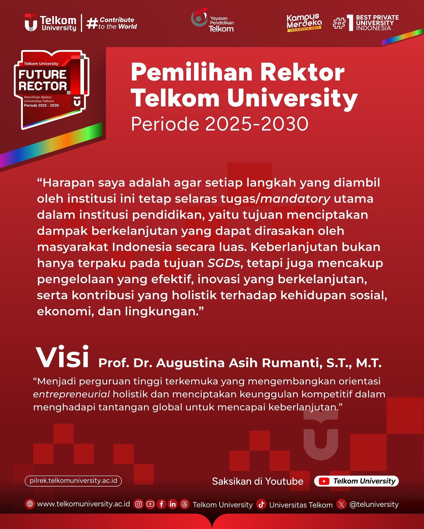 Berikut merupakan Visi dan Misi dari masing-masing Bakal Calon Rektor Telkom University periode 2025 – 2030