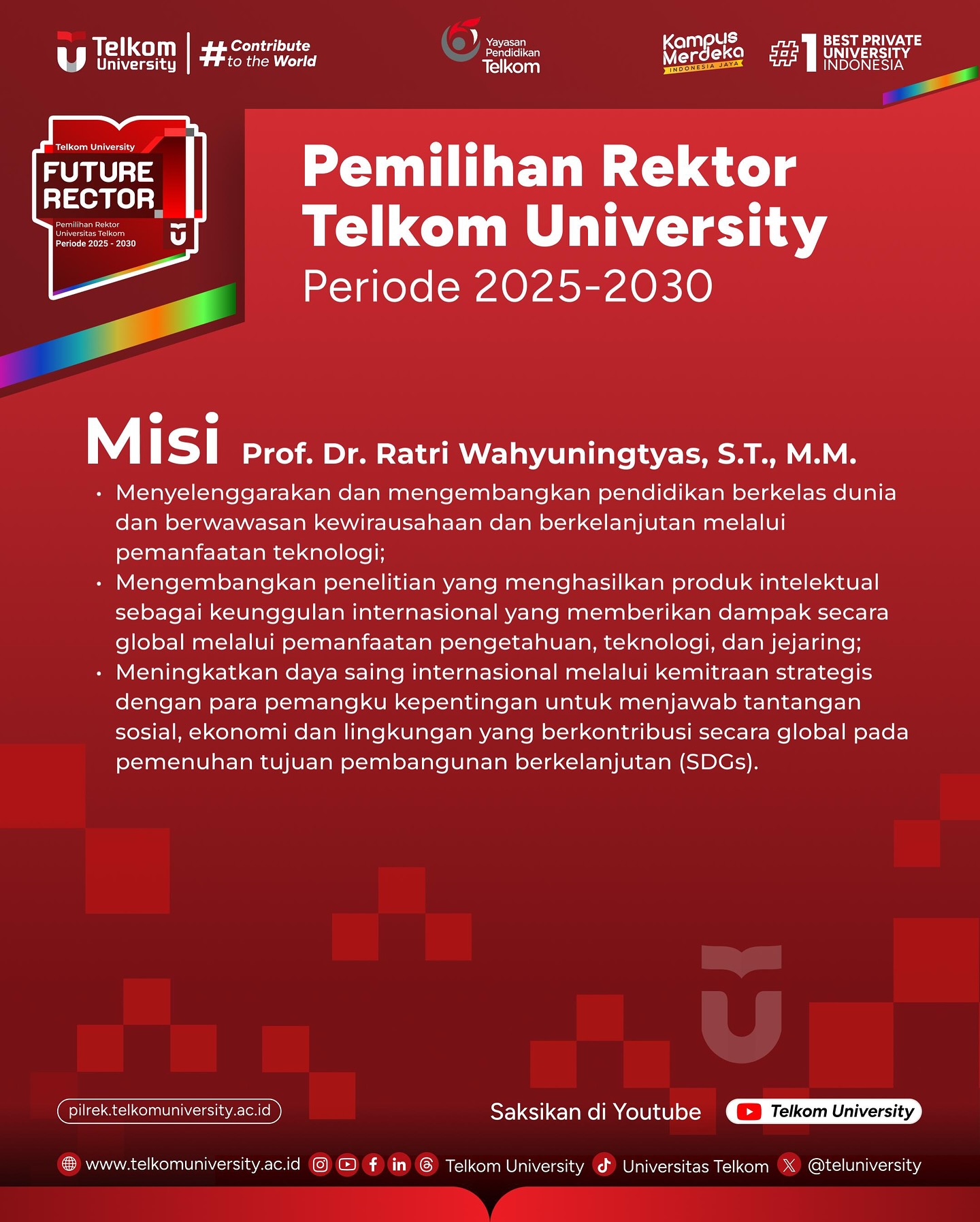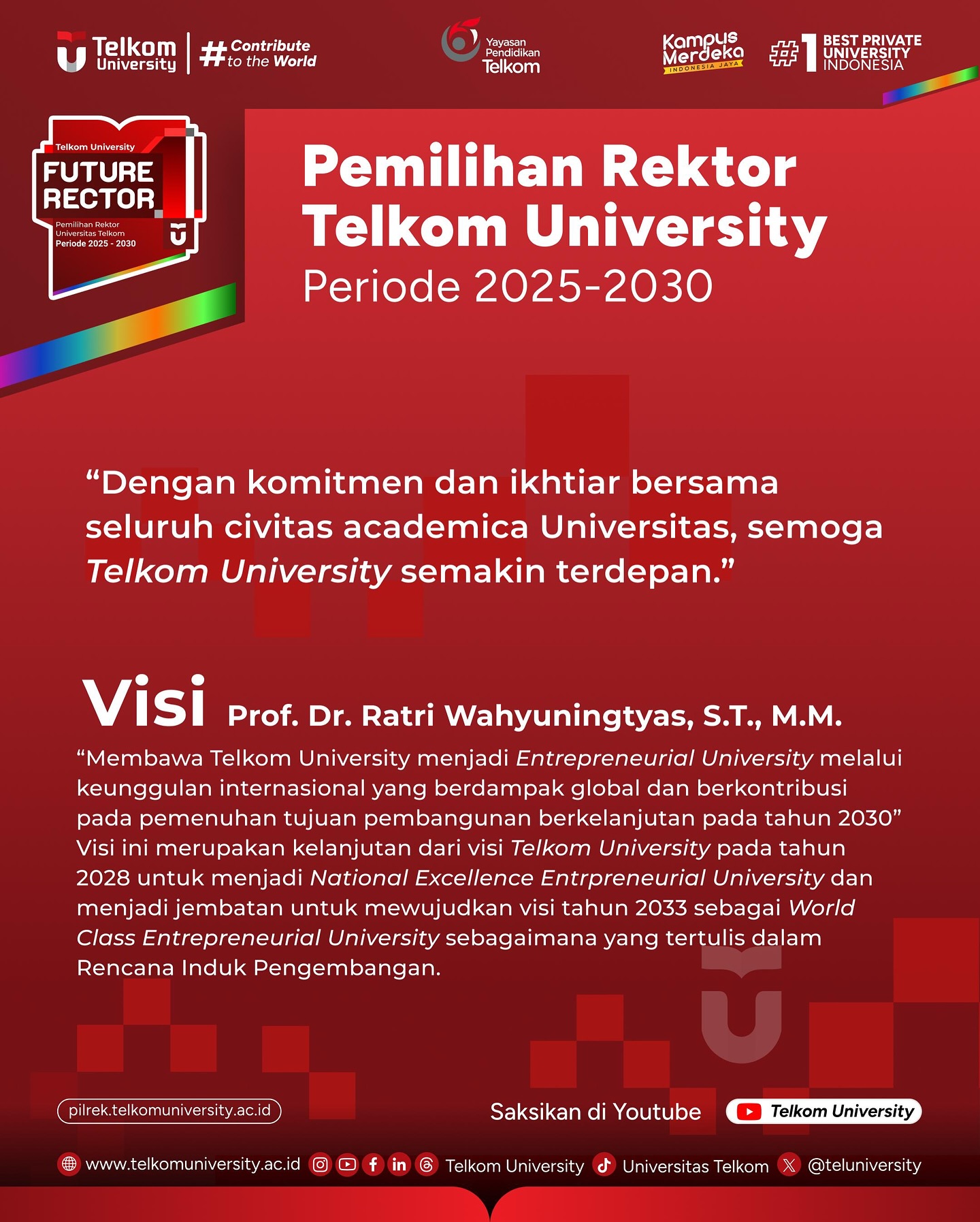 Berikut merupakan Visi dan Misi dari masing-masing Bakal Calon Rektor Telkom University periode 2025 – 2030