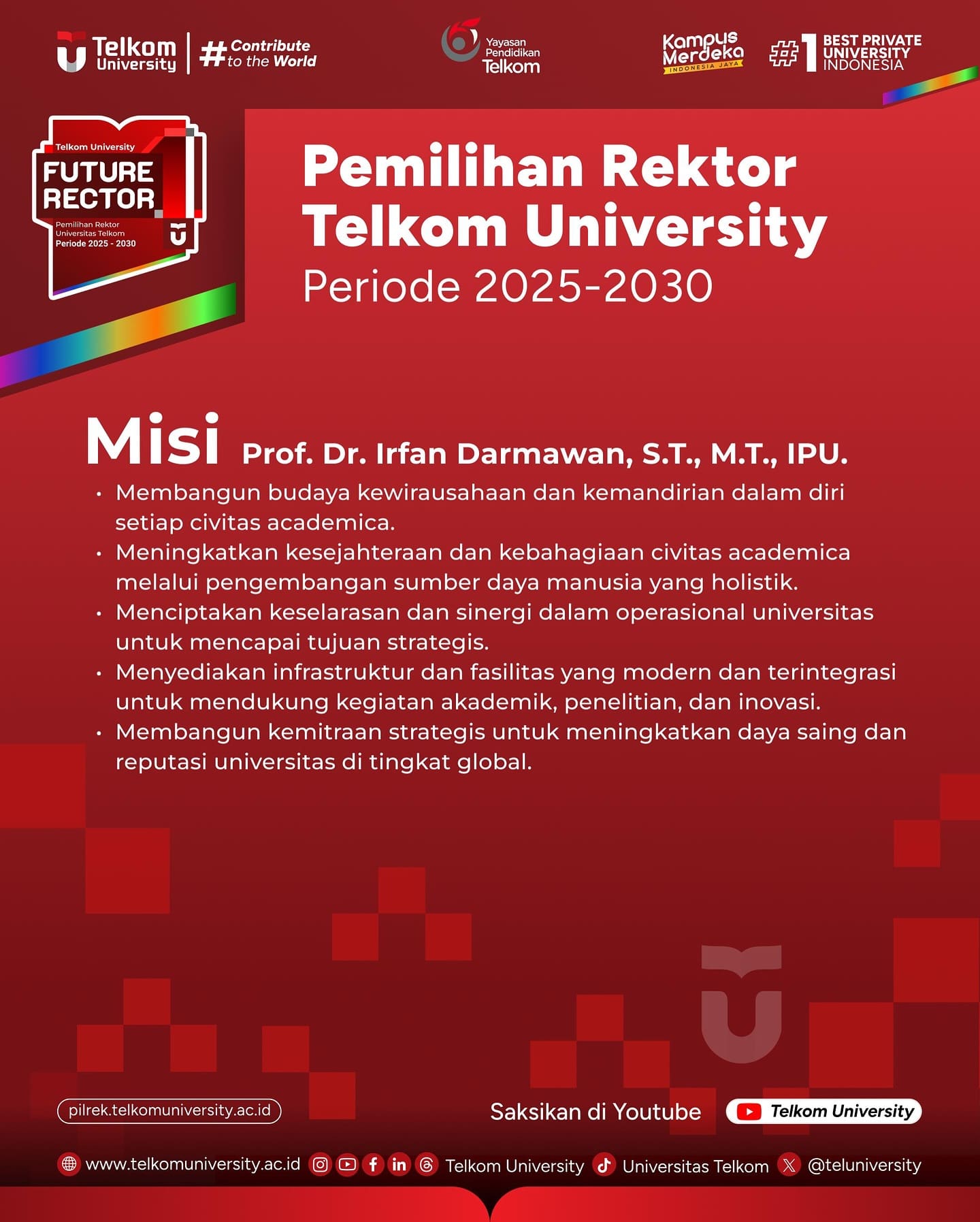 Berikut merupakan Visi dan Misi dari masing-masing Bakal Calon Rektor Telkom University periode 2025 – 2030