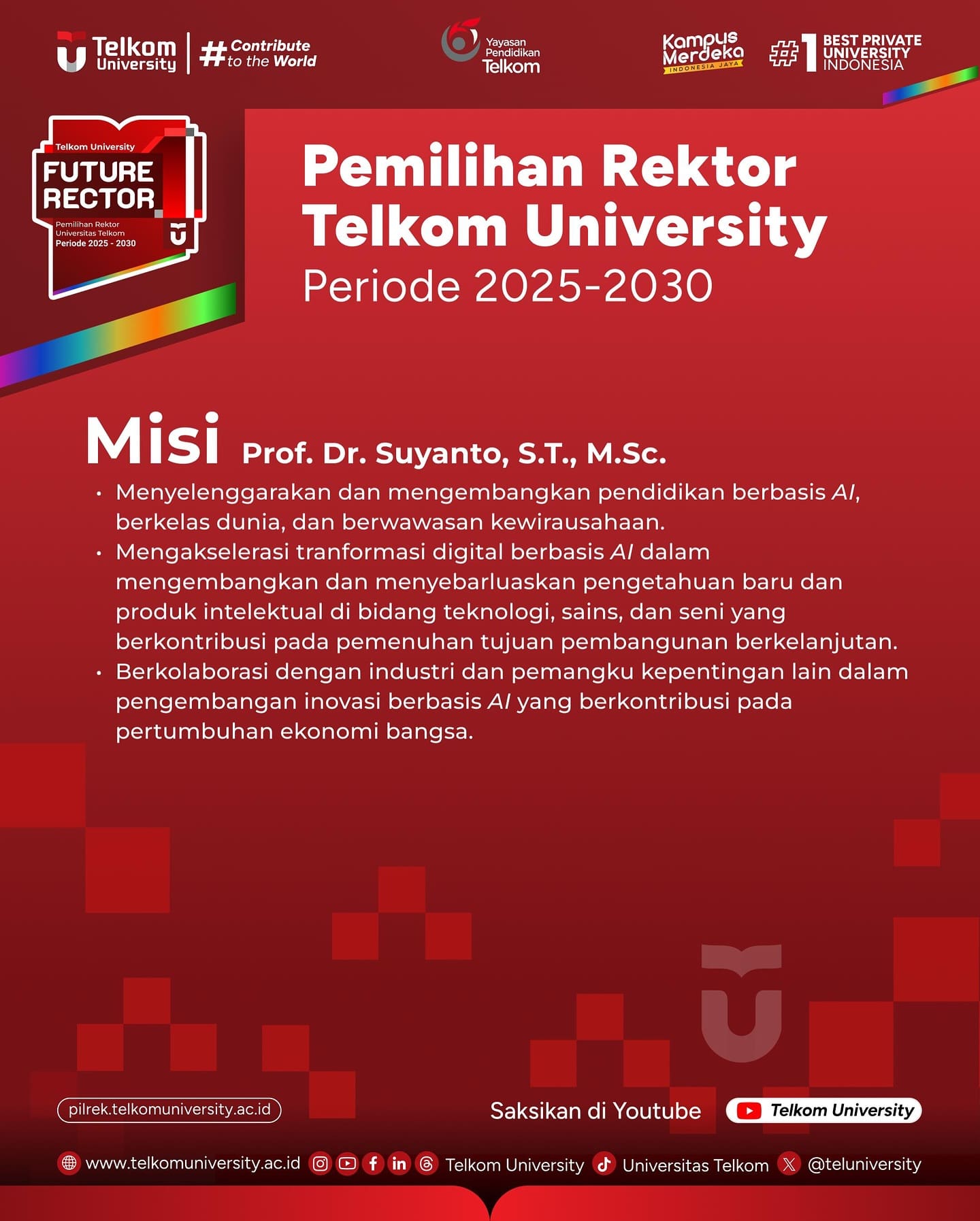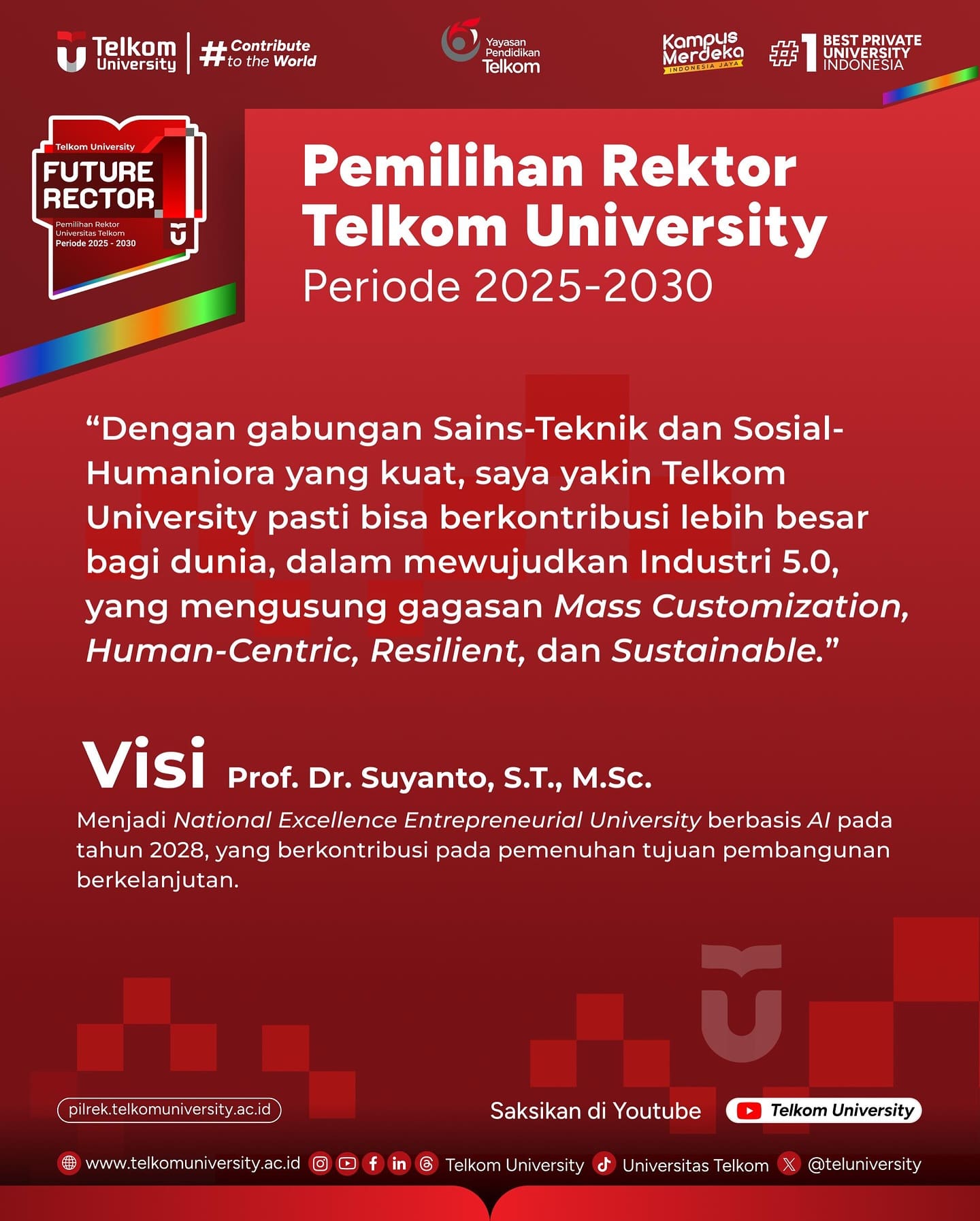 Berikut merupakan Visi dan Misi dari masing-masing Bakal Calon Rektor Telkom University periode 2025 – 2030