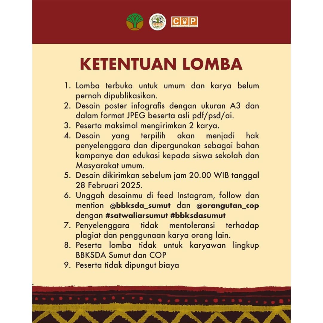 Unggah desainmu di feed Instagram, follow, dan mention @bbksda_sumut dan @orangutan_cop