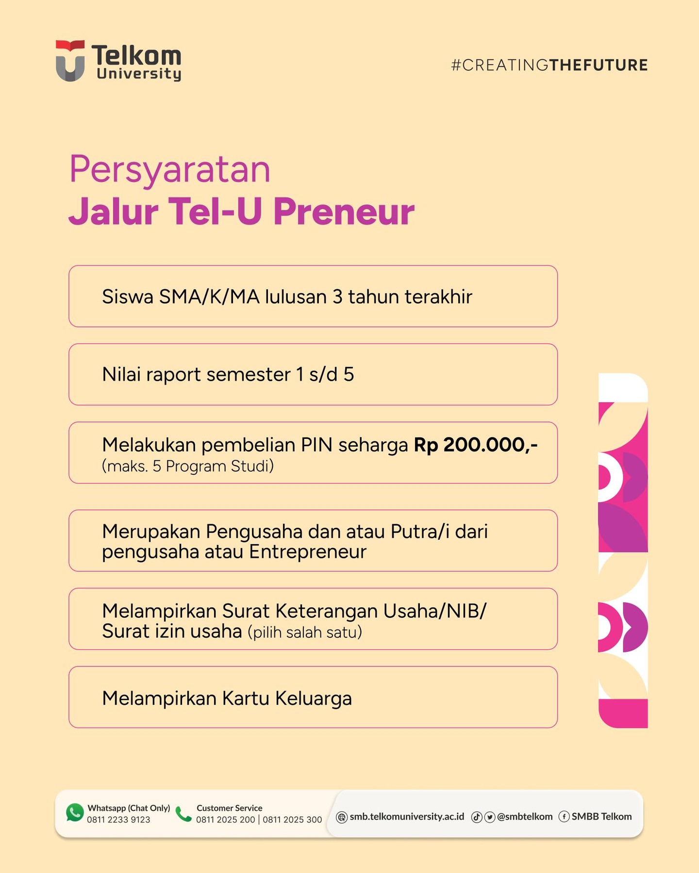 Cocok banget buat daftar Telkom University melalui ✨Jalur Seleksi Tel-U Preneur✨