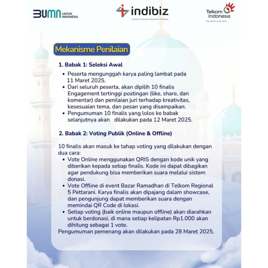 Eits tapi ini bukan sekadar lomba biasa, karena setiap suara yang masuk lewat sistem voting bakal jadi donasi untuk mereka yang membutuhkan loh😌