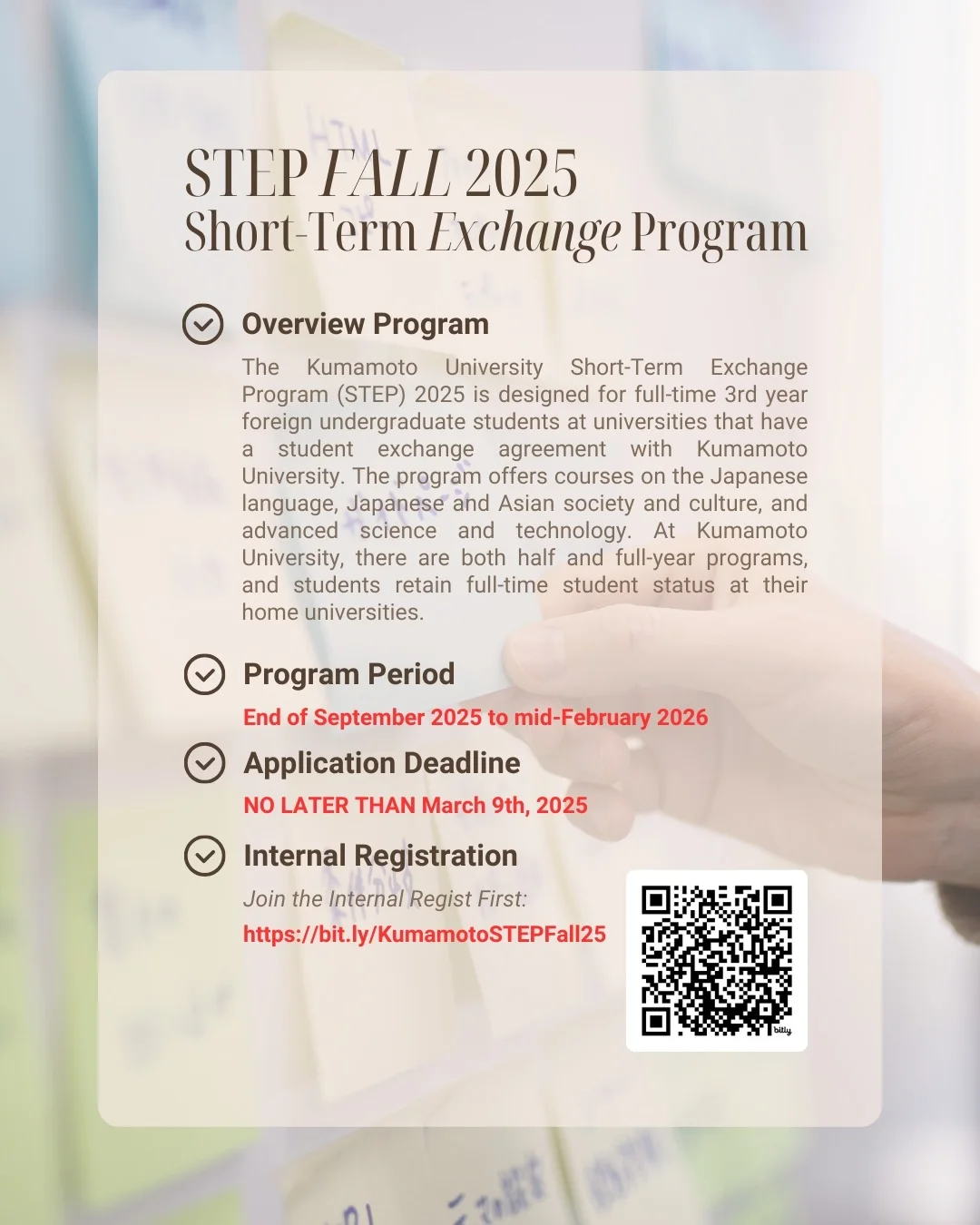 👉 Registration Link: https://bit.ly/KumamotoSTEPFall25