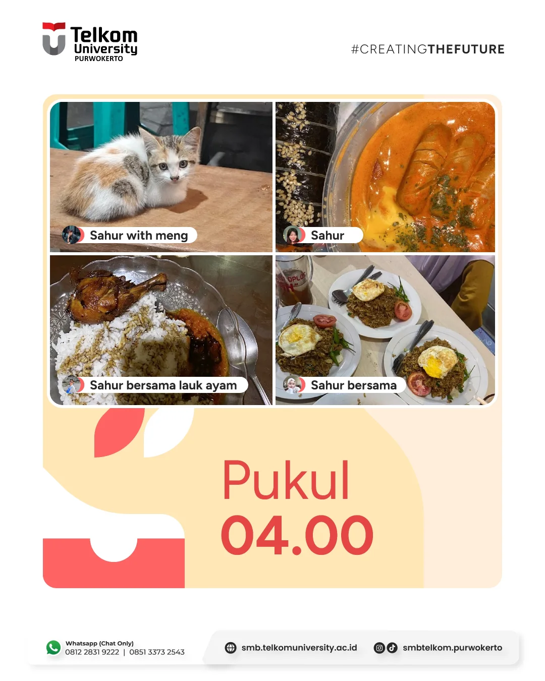 Di bulan Ramadan ini, TelUtizen dari berbagai kampus Telkom University tetap aktif dan produktif! Dari sahur sampai ngabuburit, mereka punya banyak cerita seru! 😍