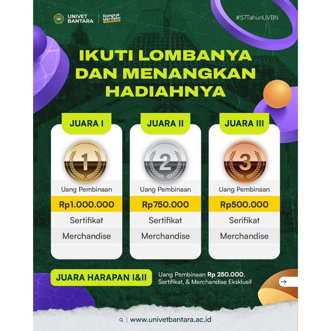 #UnivetBantara #UVBN #UniversitasVeteranBangunNusantara #KampusMerdeka #MerdekaBelajar #KampusSwasta #KampusJawaTengah #UniversitasJawaTengah #KampusSoloRaya #UniversitasSoloRaya #DiesNatalisUVBN #57TahunUVBN #LombaDesain #KompetisiDesain #LombaDesign #KompetisiDesign #DesignCompetition