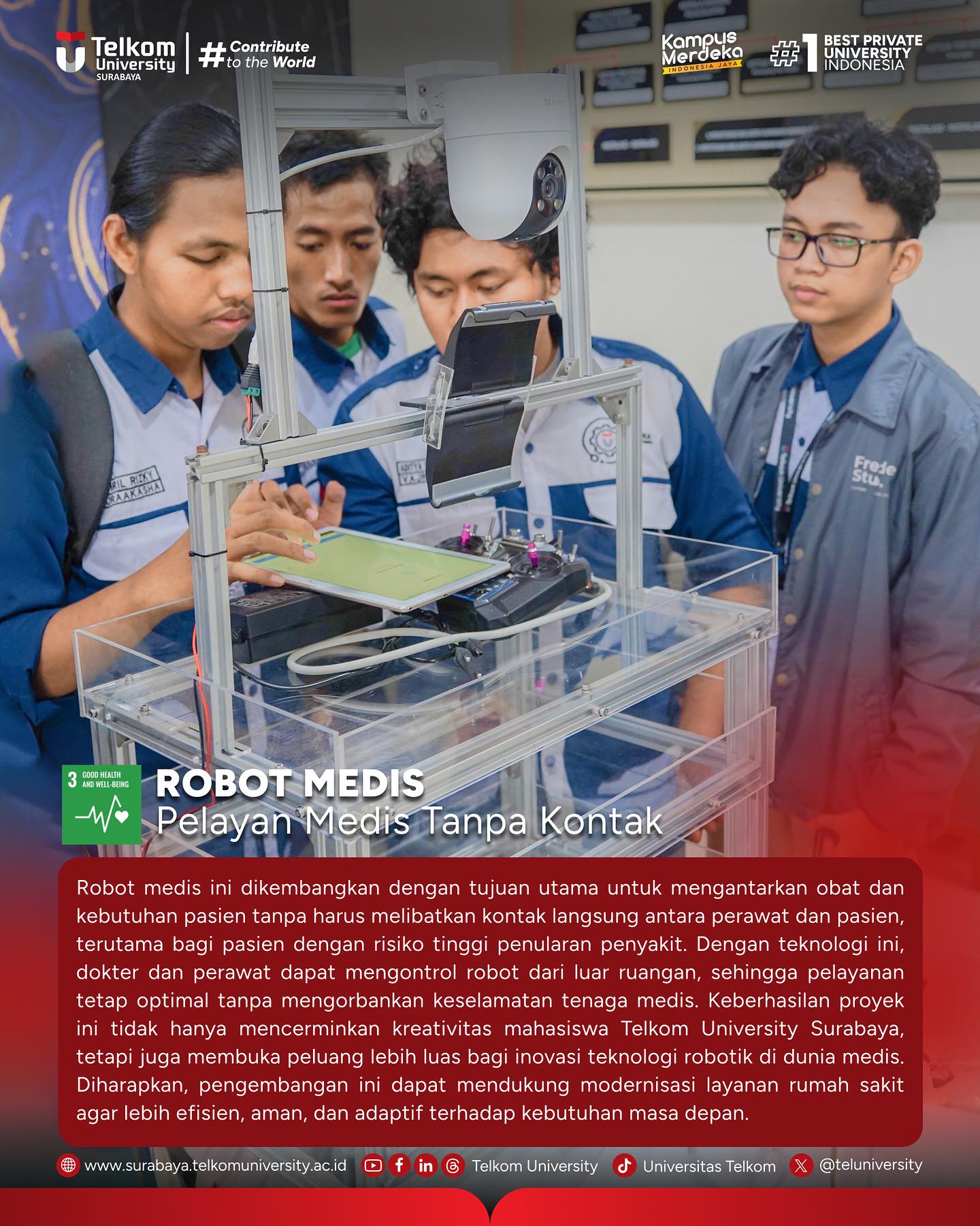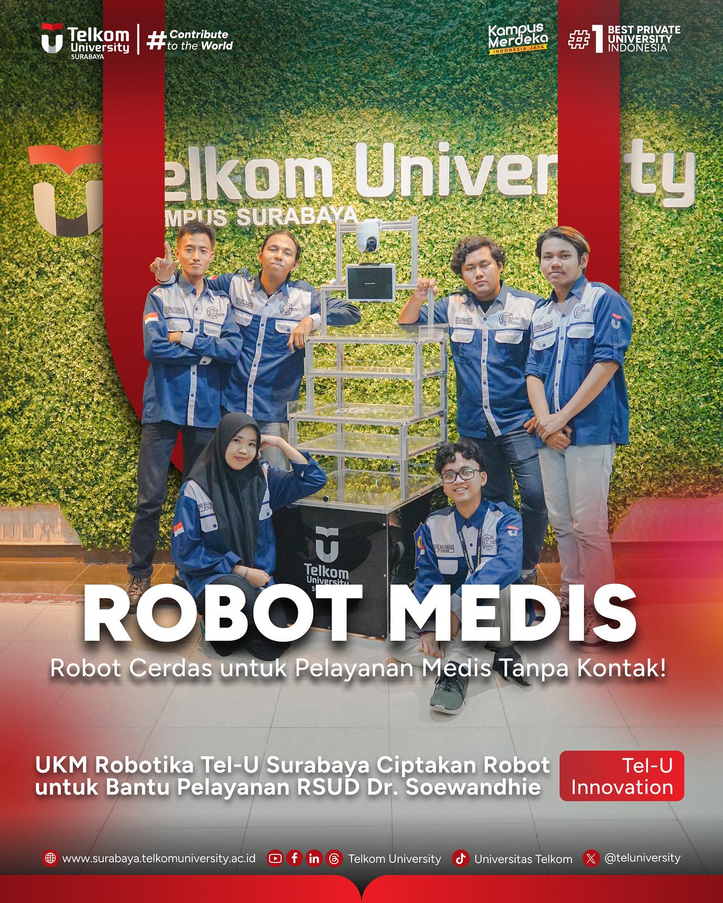 Tim pengembang robot medis ini terdiri dari 8 mahasiswa berbakat Telkom University❤️ yaitu: