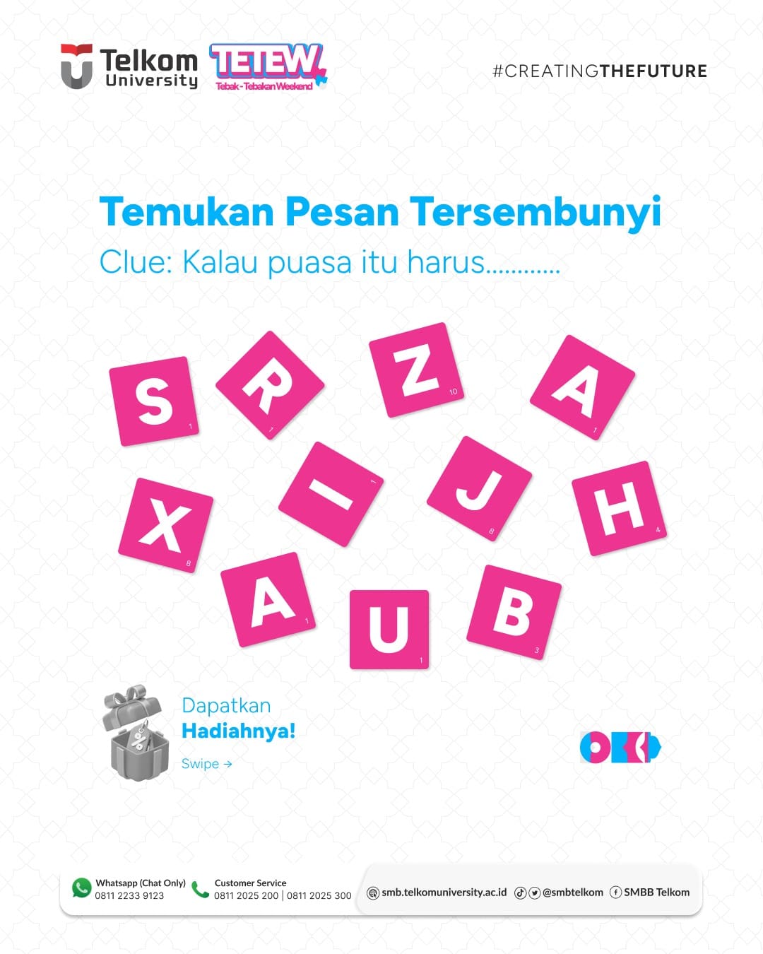 Buat yang bisa nemuin 2 kata tersembunyi, dapat hadiah dari SMB Telkom 🤩