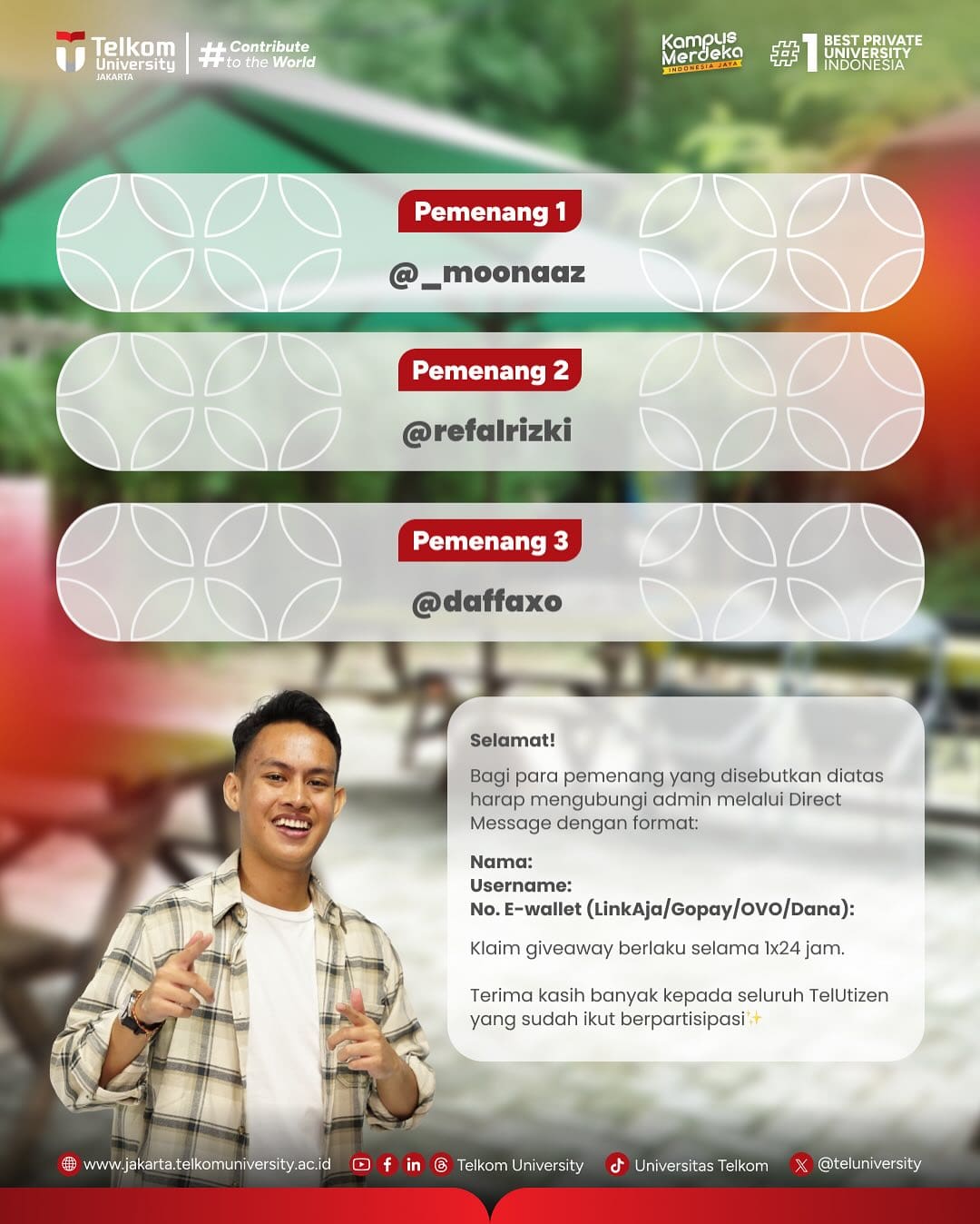 kepada para pemenang bisa langsung menghubungi admin via DM dalam kurun waktu 1×24 jam.