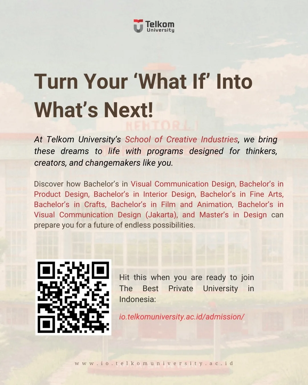 Are you a visionary, a dreamer, a creator? If creativity is your passion, Telkom University’s School of Creative Industries is where you belong! 🌟
