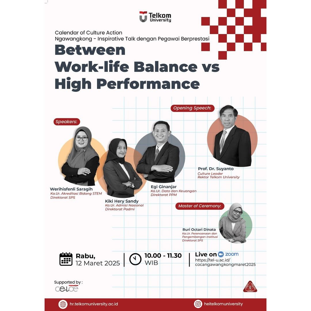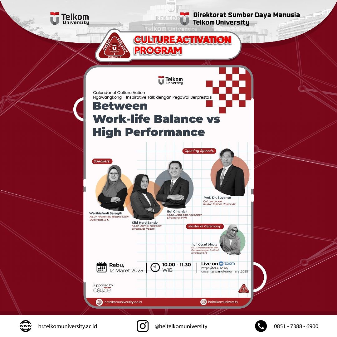 Dalam rangka internalisasi nilai-nilai budaya HEI, Calendar of Culture Action (CoCA) kembali hadir dalam Agenda Ngawangkong – Inspirative Talk bersama 3 TPA Berprestasi, yang menghadirkan Kiky Hery Sandi (Kepala Urusan Admisi Nasional), Werihisfenli Saragih (Kepala Urusan Akreditasi Bidang STEM), dan Egi Ginanjar (Kepala Urusan Data dan Keuangan) untuk memberikan inspirasi dan berbagi pengalaman yang akan dilaksanakan pada: