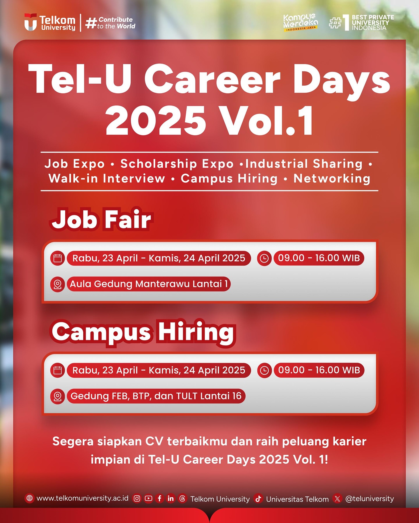 Siapkan diri kamu untuk hadir ke acara Tel-U Careeer Days 2025 Vol. 1