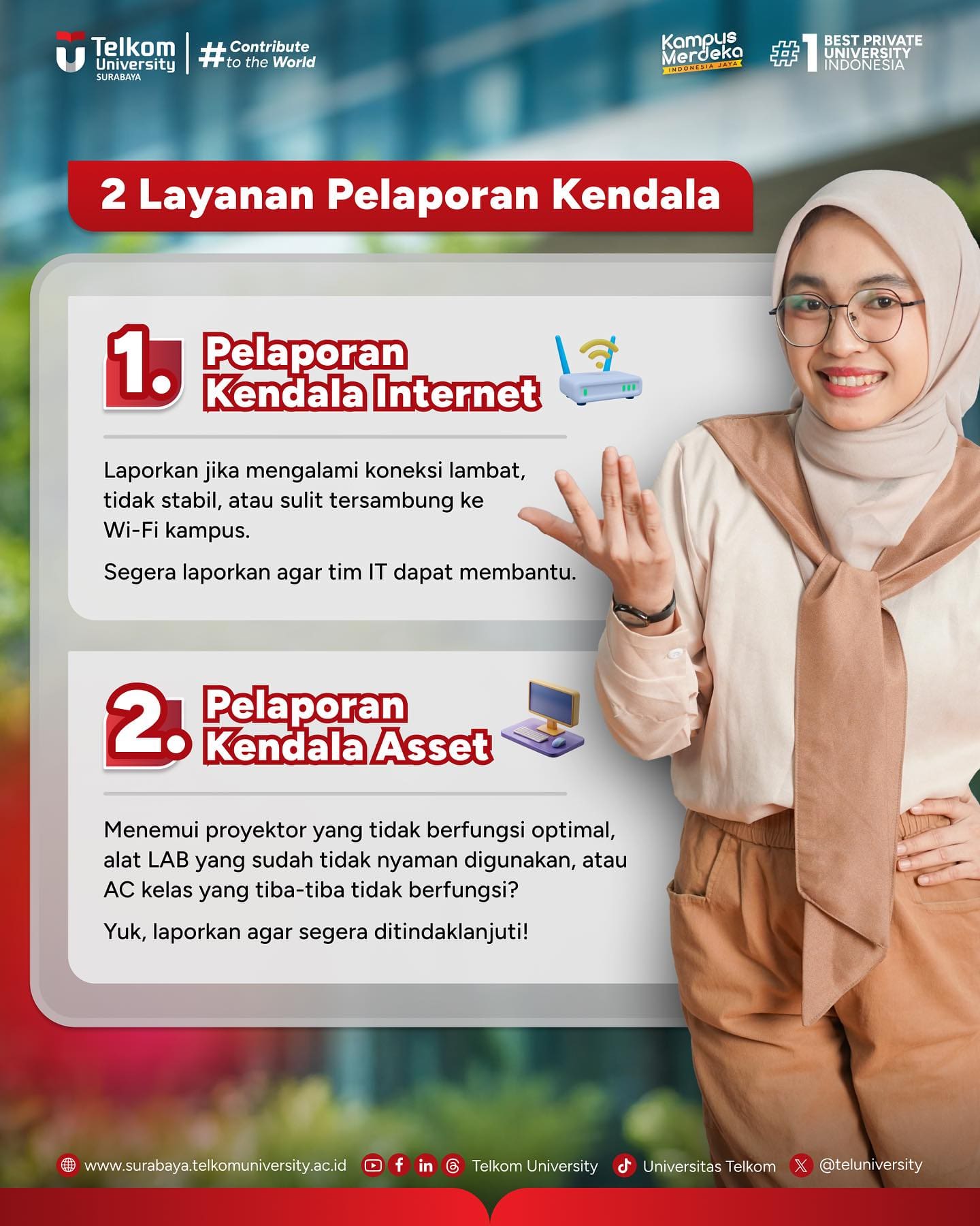 Mari bersama kita wujudkan kampus yang nyaman, responsif, dan selalu mendukung setiap proses belajar mengajar.