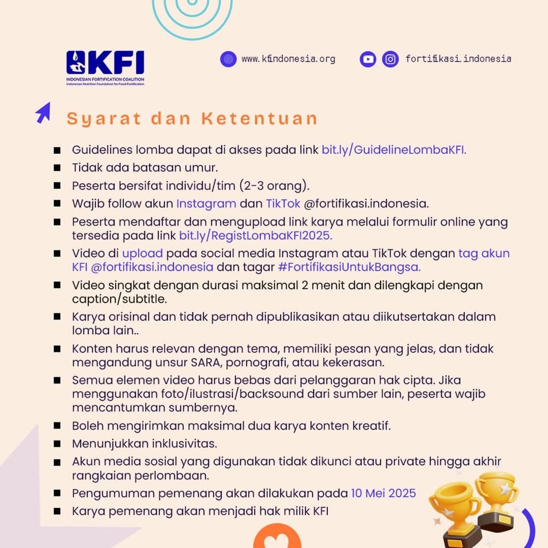 #LombaVideo #FortifikasiUntukBangsa #SocialProtection #Nutrition #FortifikasiPangan #LombaKreatif #Inklusivitas #VideoKreatif #KFI2025