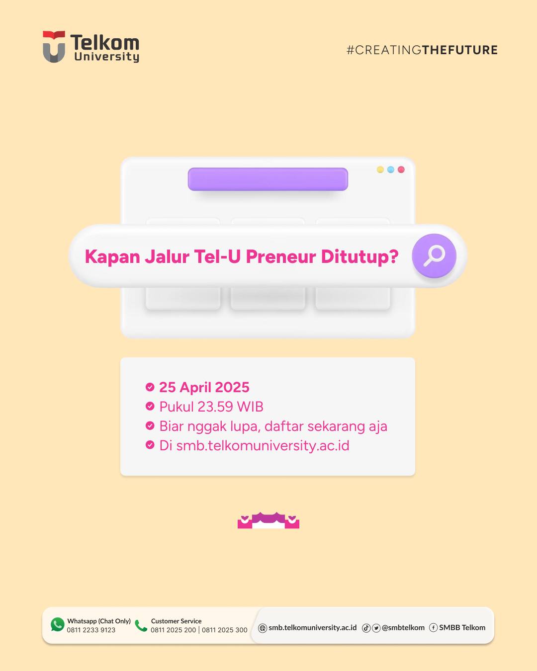 Yuk, tunggu apa lagi? Daftar sekarang di smb.telkomuniversity.ac.id 😉