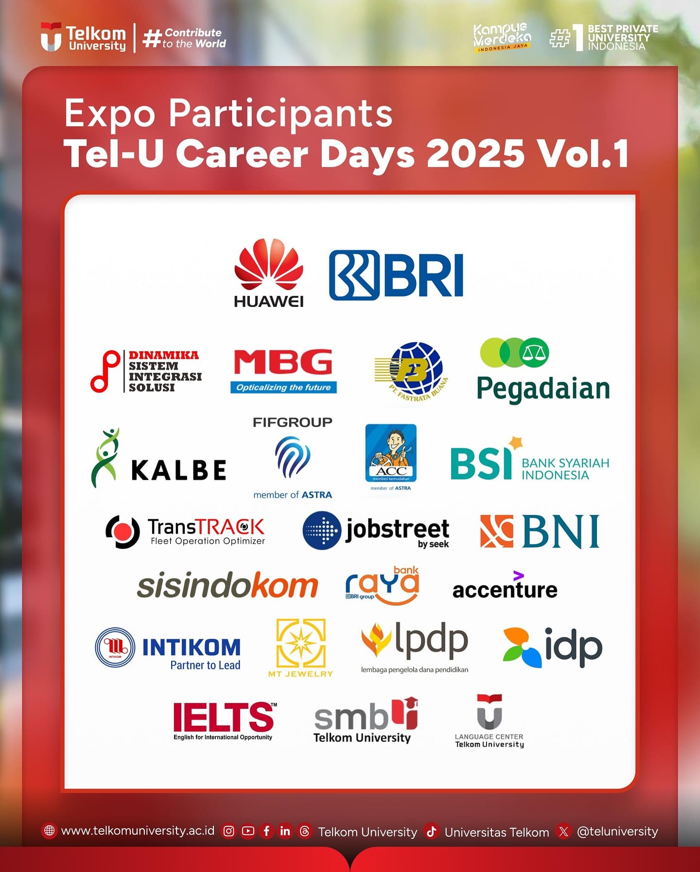 Tel-U Career Days merupakan pameran bursa kerja, yang rutin diselenggarakan oleh Bagian Pengembangan Karir dan Alumni, Direktorat Kemahasiswaan, Karir, dan Alumni, yang bertujuan memfasilitasi engagement antara mahasiswa dan alumni dengan mitra industri. Kegiatan Tahunan Telkom University Career Days kali ini akan berlangsung pada,