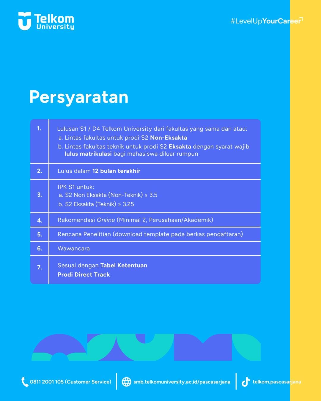Program Direct Track adalah jalur seleksi yang dibuka untuk lulusan S1/D4 Telkom University untuk langsung lanjut ke jenjang S2 tanpa melalui tes.