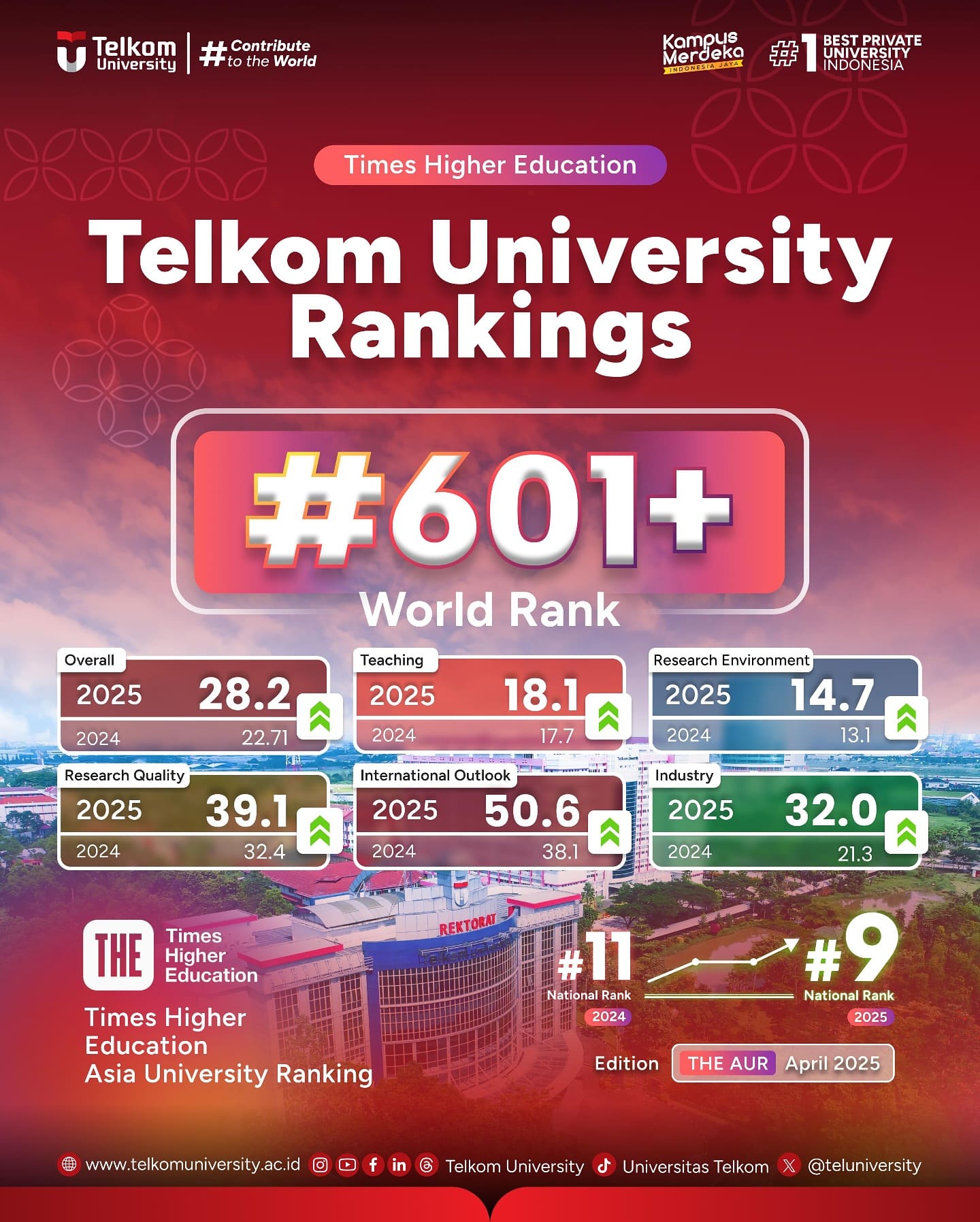 Telkom University berhasil meraih prestasi dalam pemeringkatan Times Higher Education merilis daftar Asia University Rankings 2025.