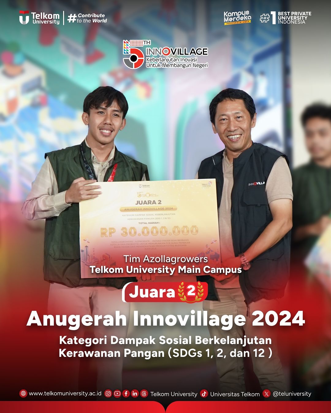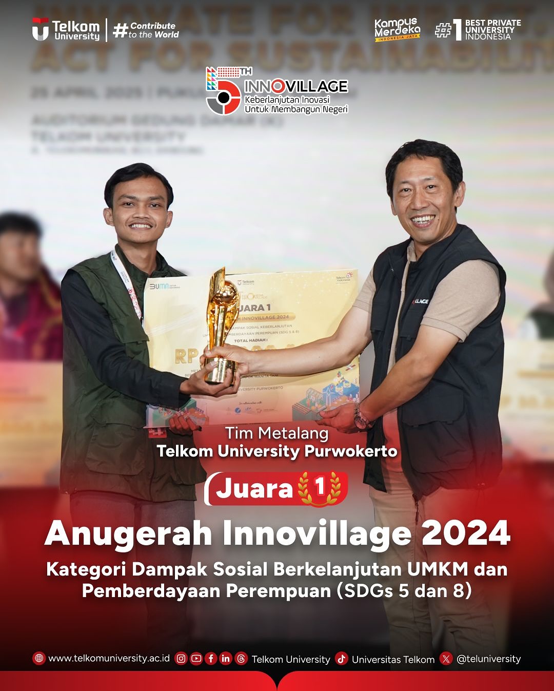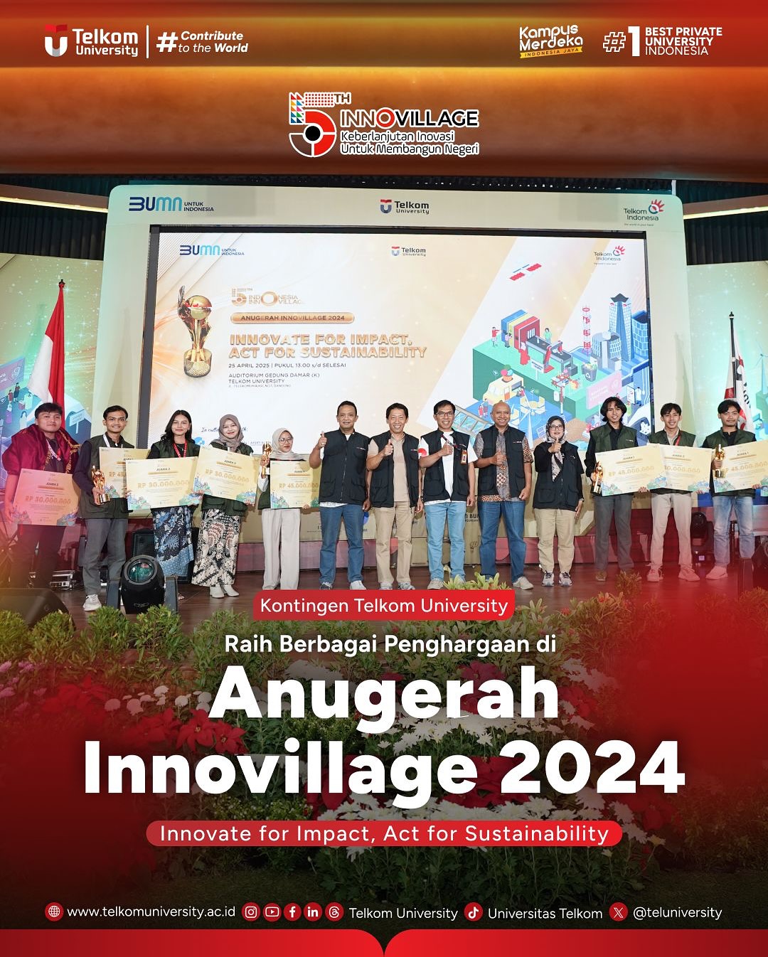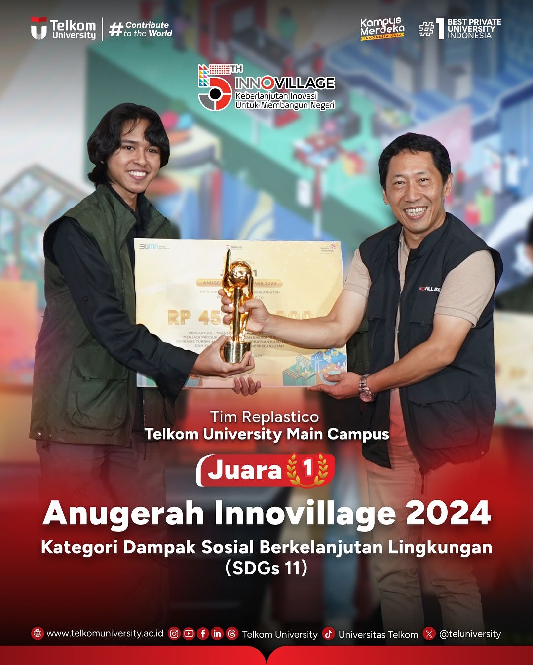 #TelkomUniversity #KampusSwastaTerbaik #CreatingTheFuture #ContributeToTheWorld #EntrepreneurialUniversity #SustainabilityUniversity