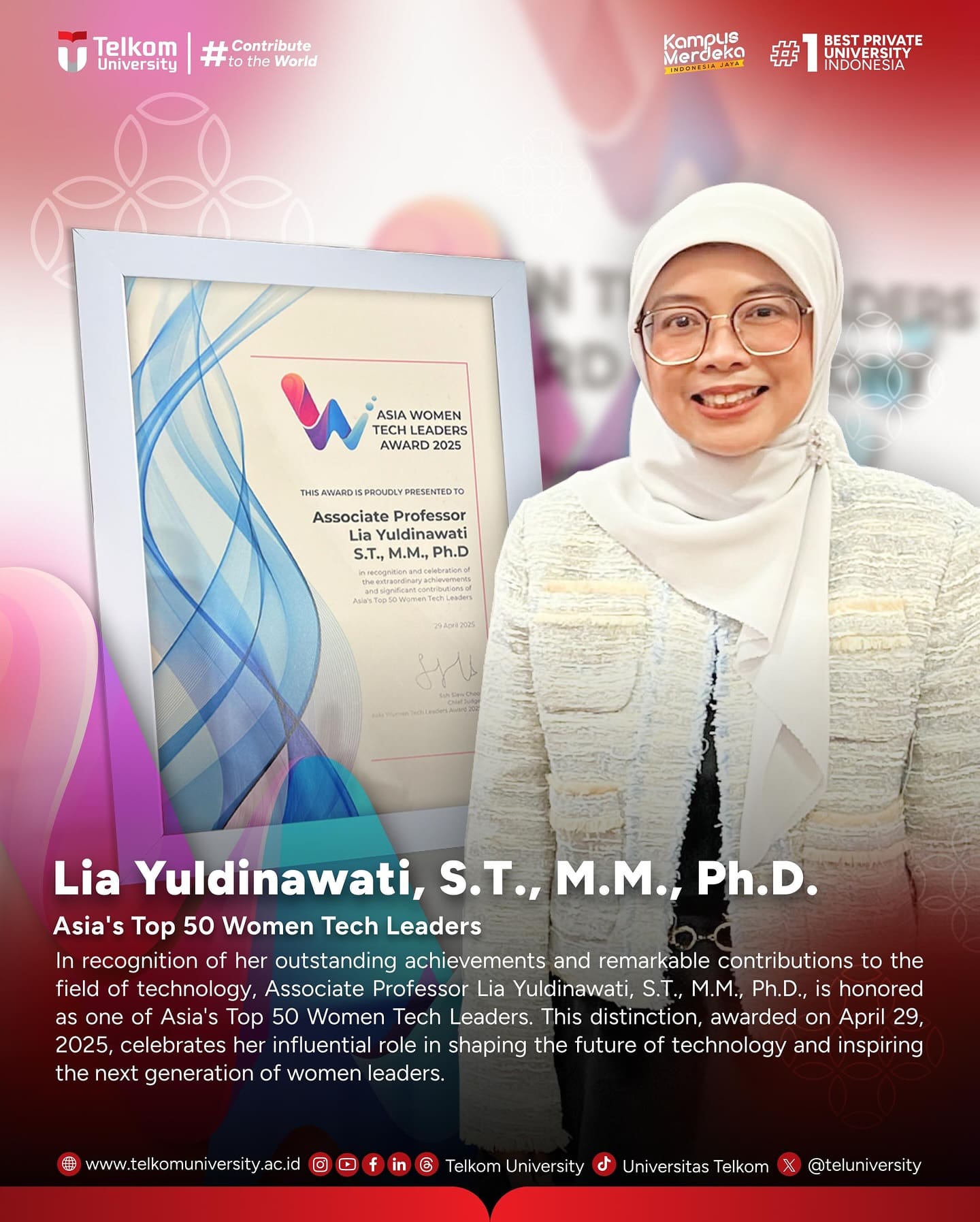 Selamat kepada Associate Professor Lia Yuldinawati, S.T., M.M., Ph.D., Direktur Strategic Partnership and International Office Telkom University, dinobatkan sebagai salah satu Asia’s Top 50 Women Tech Leaders pada 29 April 2025.