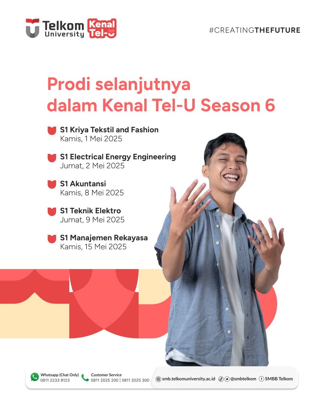 Nah, kamu bisa join webinar Kenal Tel-U dari Telkom University biar makin yakin dan mantab nih buat kuliah nanti. Catat jadwalnya ya!