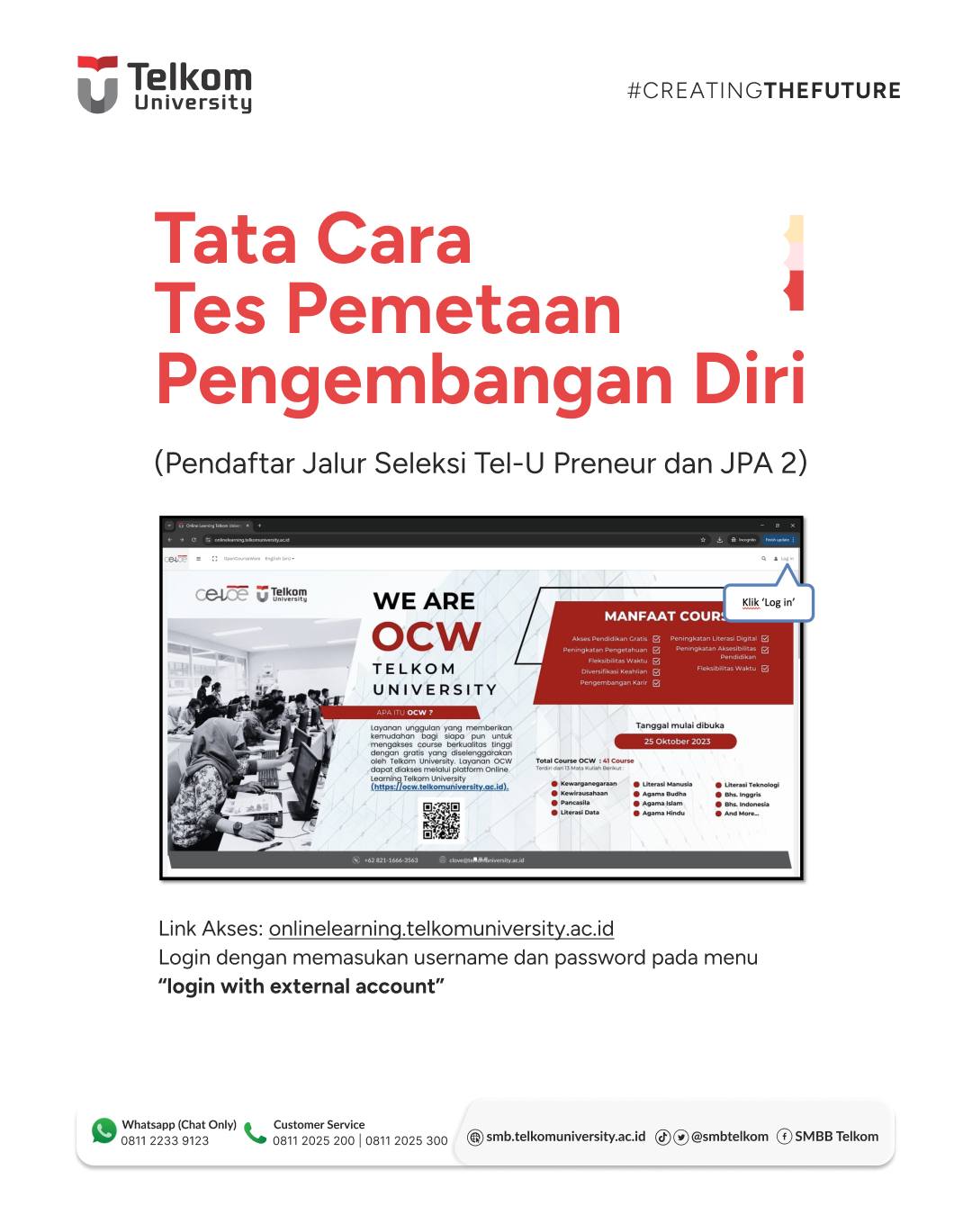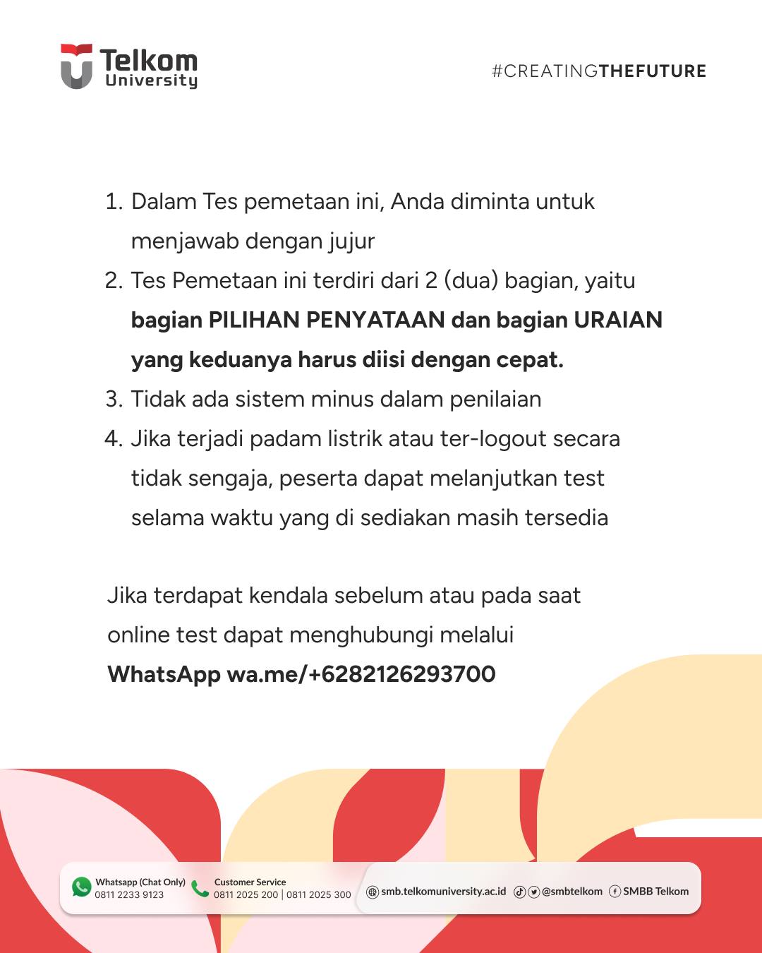 Buat calon TelUtizen yang mendaftar Jalur Seleksi Tel-U Preneur dan JPA 2, jangan lupa untuk mengikuti Tes Pemetaan Pengembangan Diri ya!