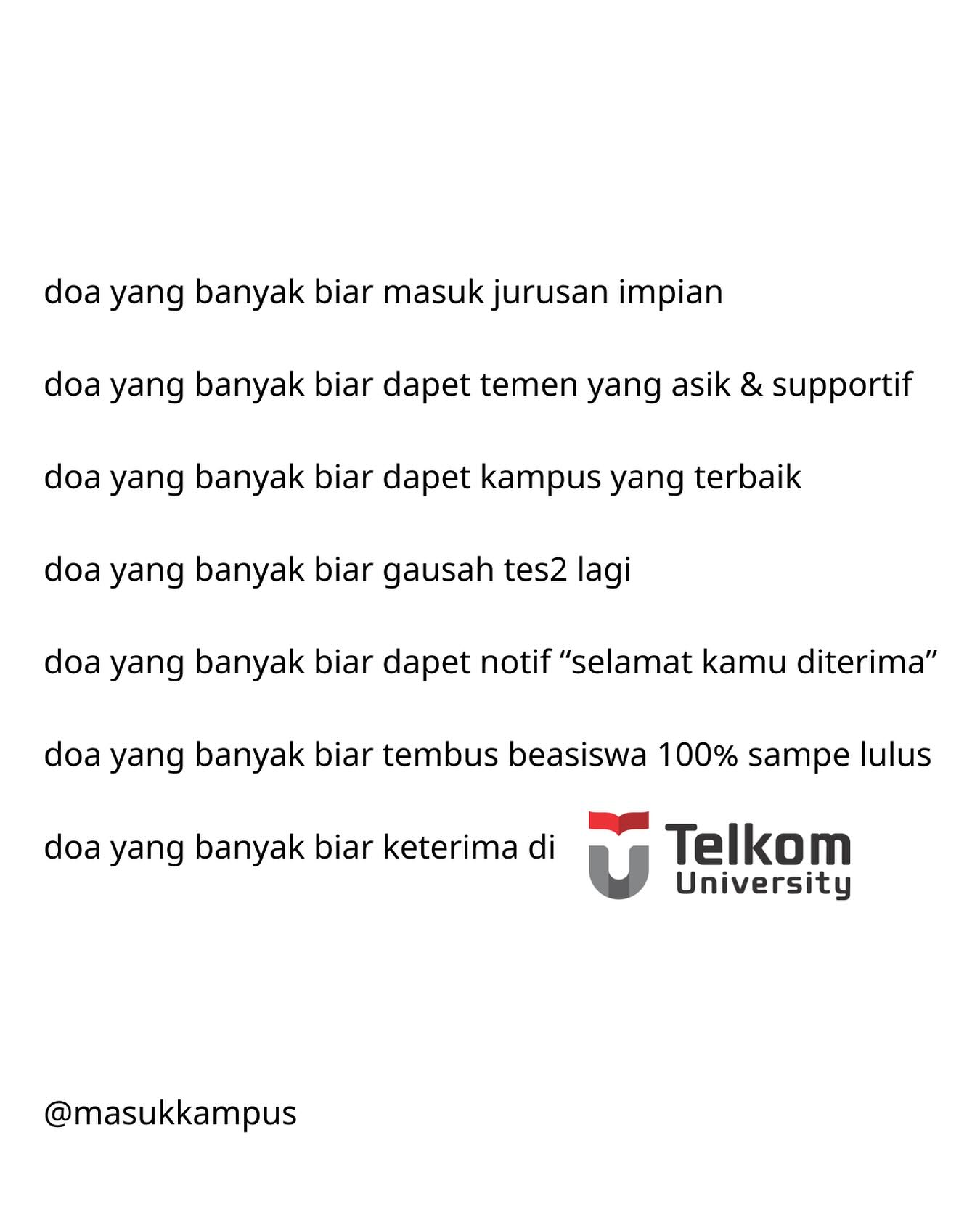 Telkom University sedang membuka jalur beasiswa prestasi dan jalur rapor yang bisa kamu ikuti TANPA TES!