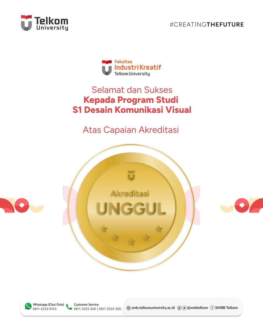 Yeay! Selamat kepada S1 Desain Komunikasi Visual @telkomuniversity atas capaian Akreditasi Unggul 👏 👏 👏