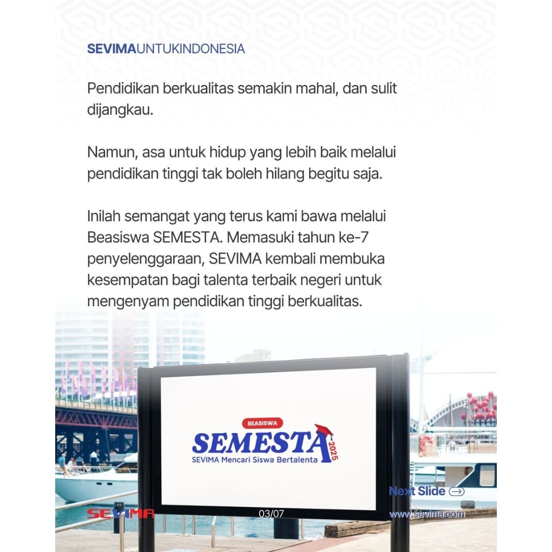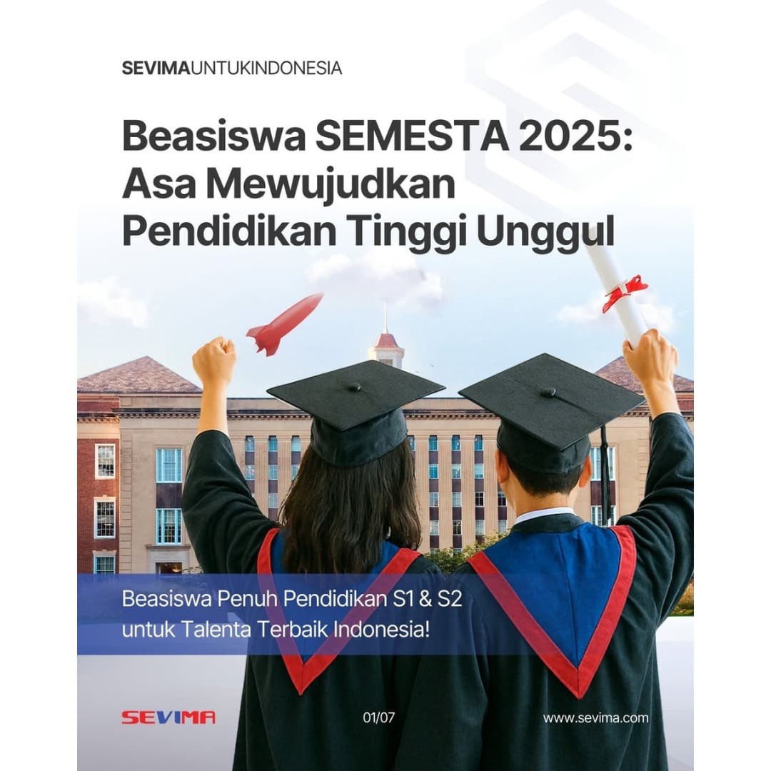 #SEVIMA #SEVIMAuntukIndonesia #BeasiswaSEMESTA #revolutionizeEducation #beasiswaS1 #beasiswakuliahΒ #beasiswa