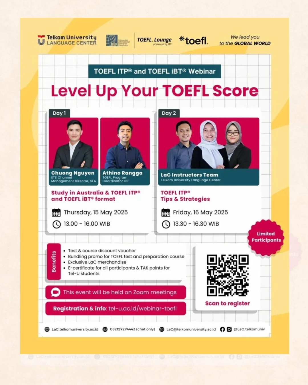 🔗 Further information & registration: tel-u.ac.id/webinar-toefl 🔗