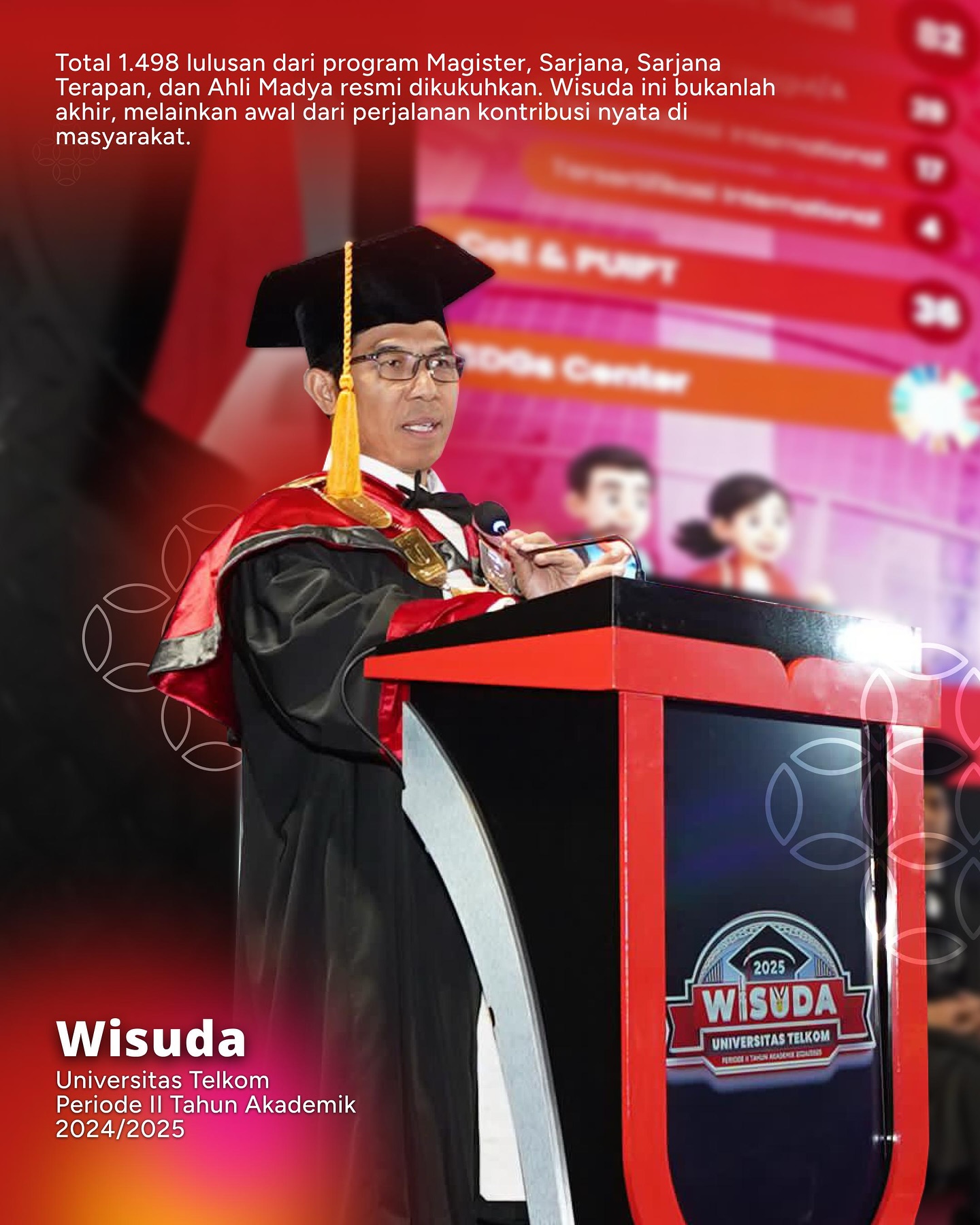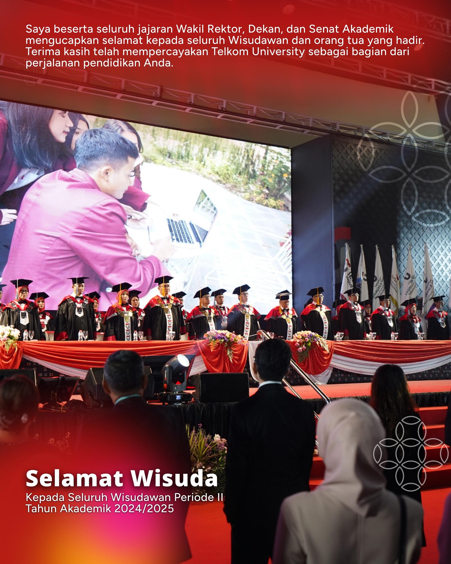 Alhamdulillah, kemarin Telkom University baru saja meluluskan 1498 wisudawan yang siap membangun bangsa. Anak-anakku semoga banyak impianmu yang tercapai, teruslah berusaha dan berjuang meskipun banyak tantangan yang akan kau hadapi. Semoga ilmu yang didapatkan selama di Telkom University dapat menjadi bekal yang bermanfaat untuk engkau. Saya yakin kesuksesan akan menghampiri kalian yang berusaha