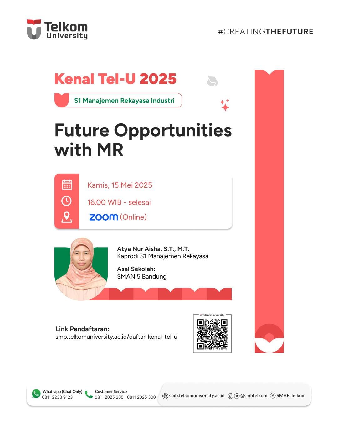 Tenang aja, kamu join webinar Kenal Tel-U dari Telkom University biar makin yakin dan mantab nih buat kuliah nanti. Catat jadwalnya ya!