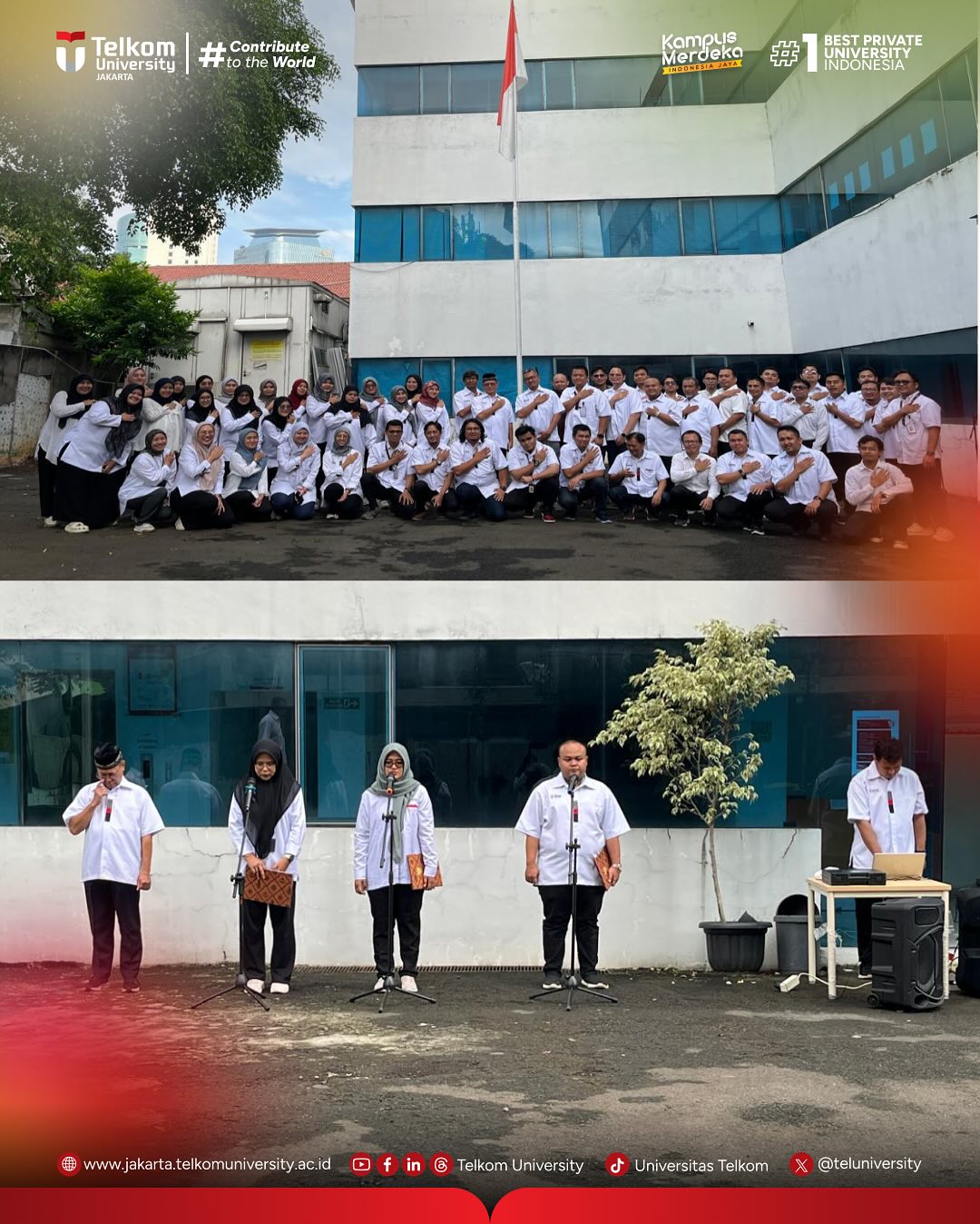 Hari ini, seluruh civitas akademika Telkom University Jakarta memperingati Hari Kebangkitan Nasional ke-117 melalui pelaksanaan upacara bendera dengan penuh khidmat dan semangat kebangsaan.