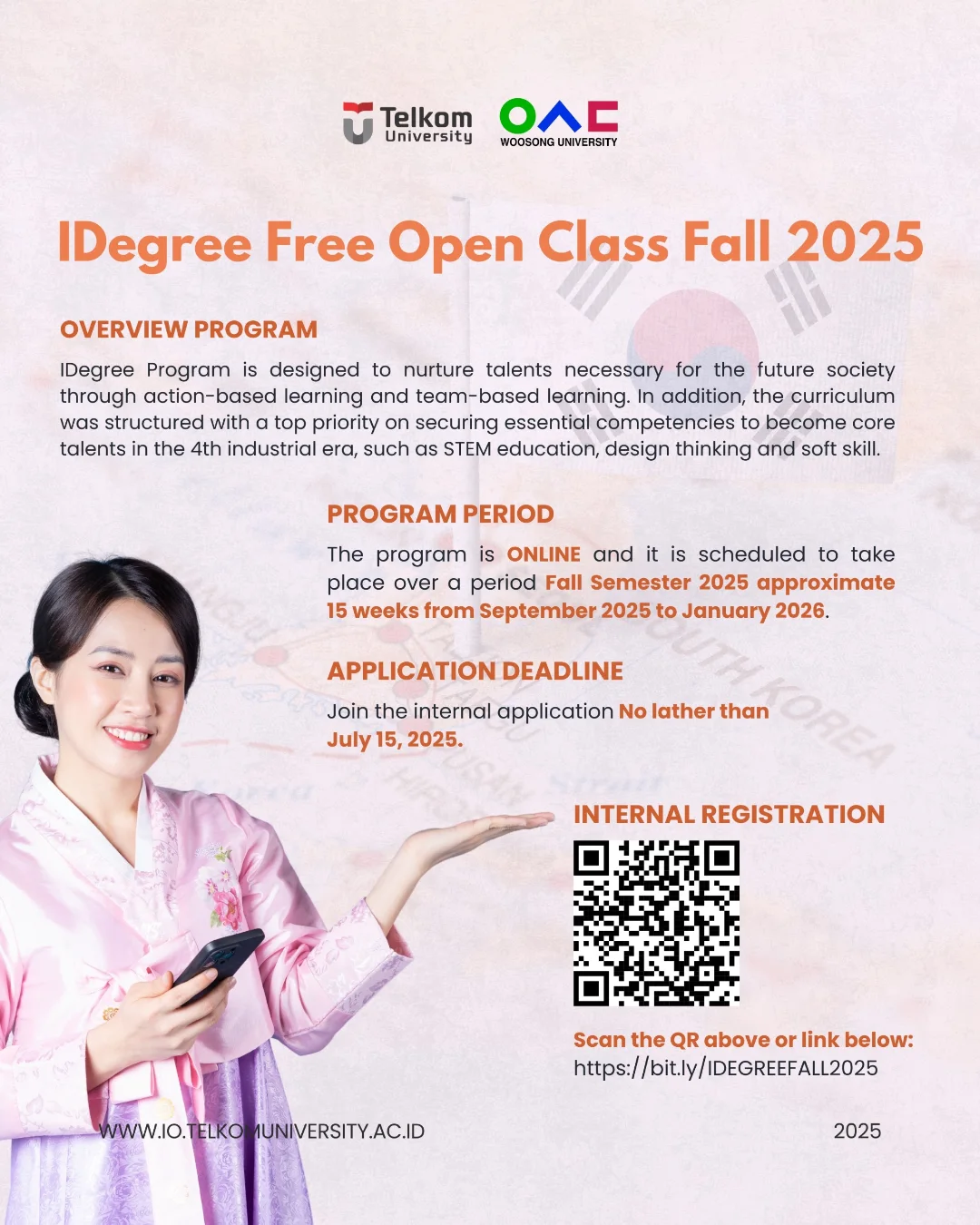 π More info: io.telkomuniversity.ac.id/idegree-free-open-class-fall-2025