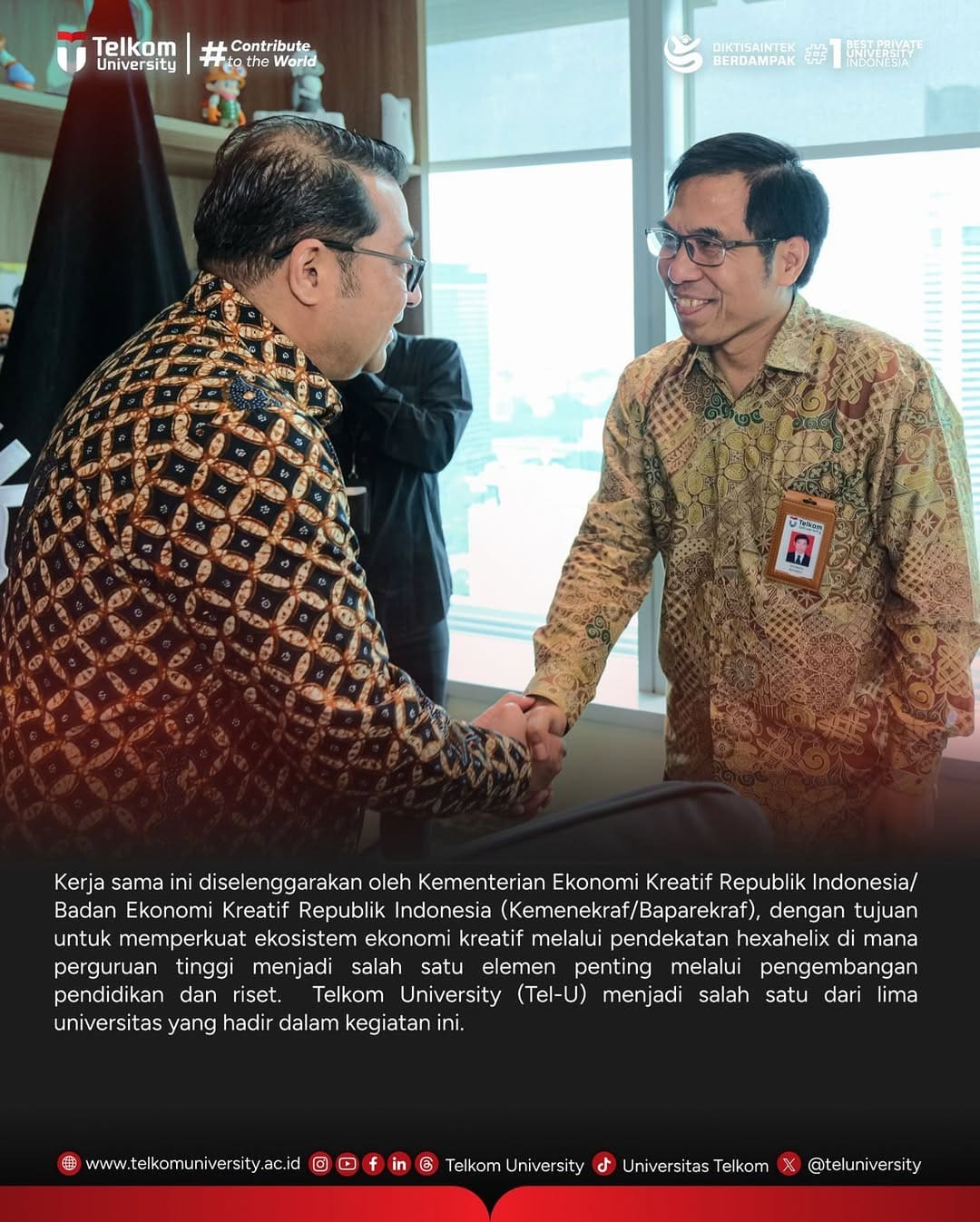 #TelkomUniversity #KampusSwastaTerbaik #CreatingTheFuture #ContributeToTheWorld #EntrepreneurialUniversity #SustainabilityUniversity