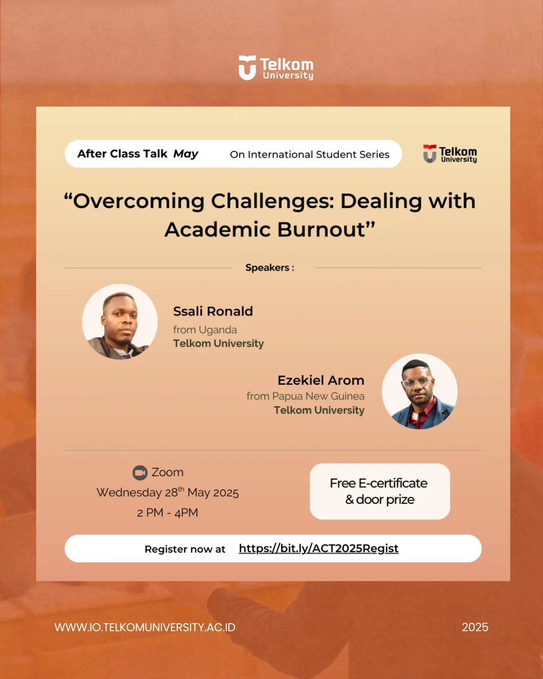 #AfterClassTalk #ACT2025 #InternationalStudentSeries #TelkomUniversity #AcademicBurnout #StudentWellbeing #MentalHealthMatters #StudyAbroadSupport #iotelkomuniv