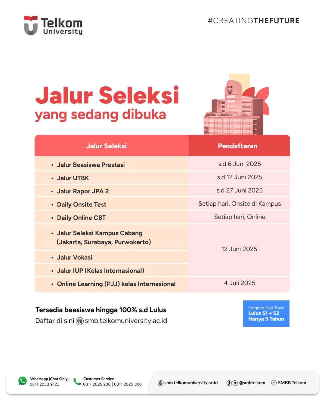 Jalur seleksi apa aja sih yang sekarang sedang dibuka di @telkomuniversity ?
