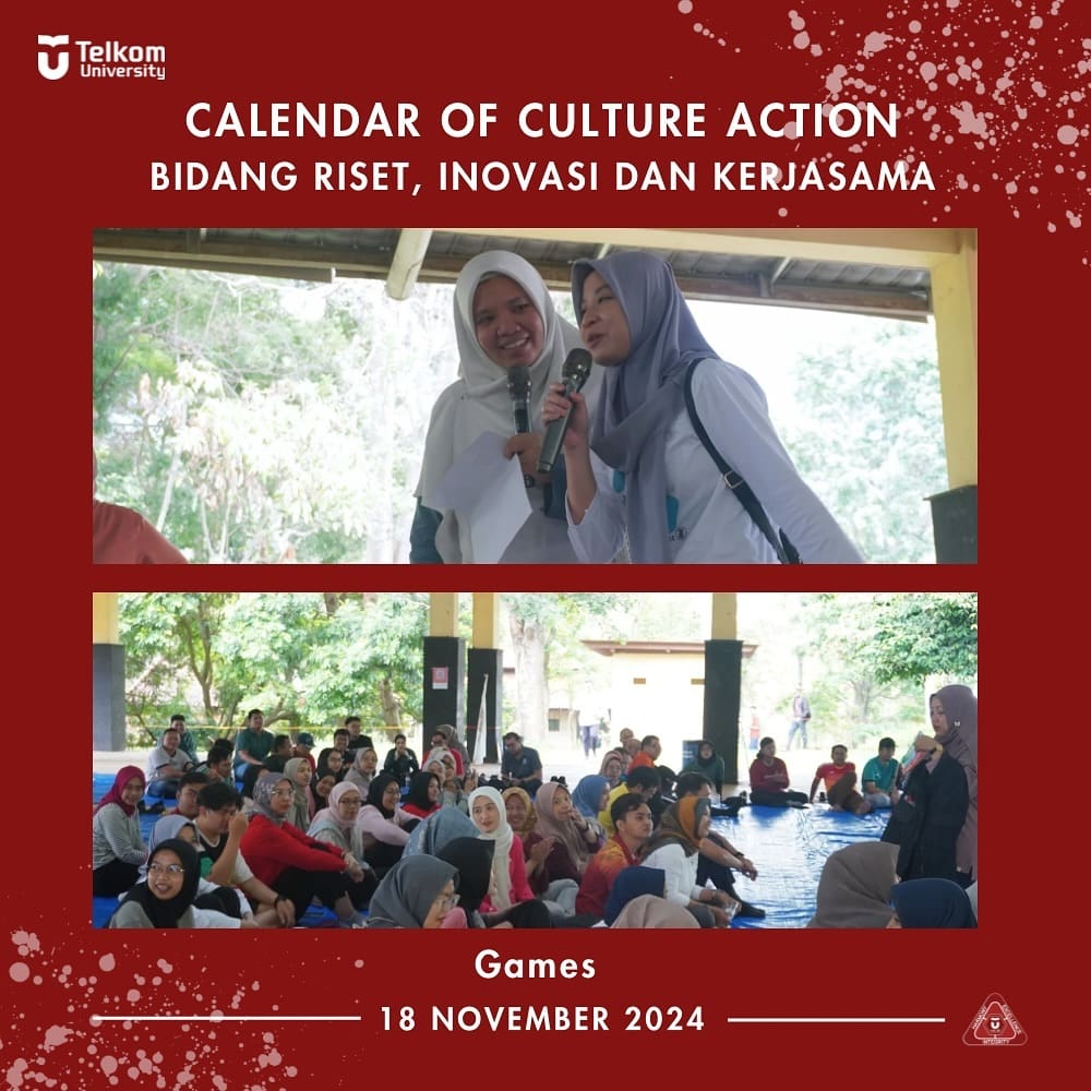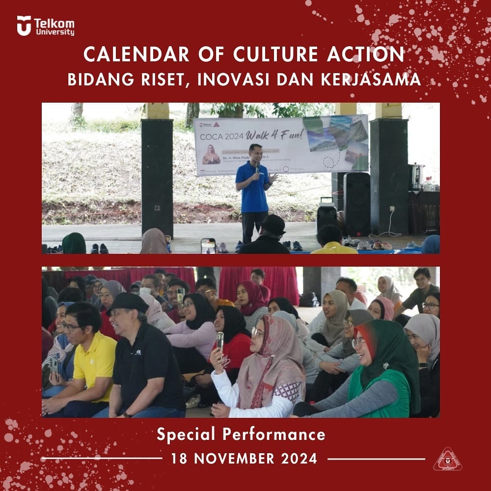 Rangkaian kegiatan CoCA yaitu Fun Walk bersama Culture champion dan Culture Management Team, Sharing Session, Special Perfomance oleh Dr. Kemas Muslim Lhaksmana S.T., M.ISD. Kegiatan ini dihadiri oleh +/- 150 pegawai Bidang Riset, Inovasi dan Kerjasama.