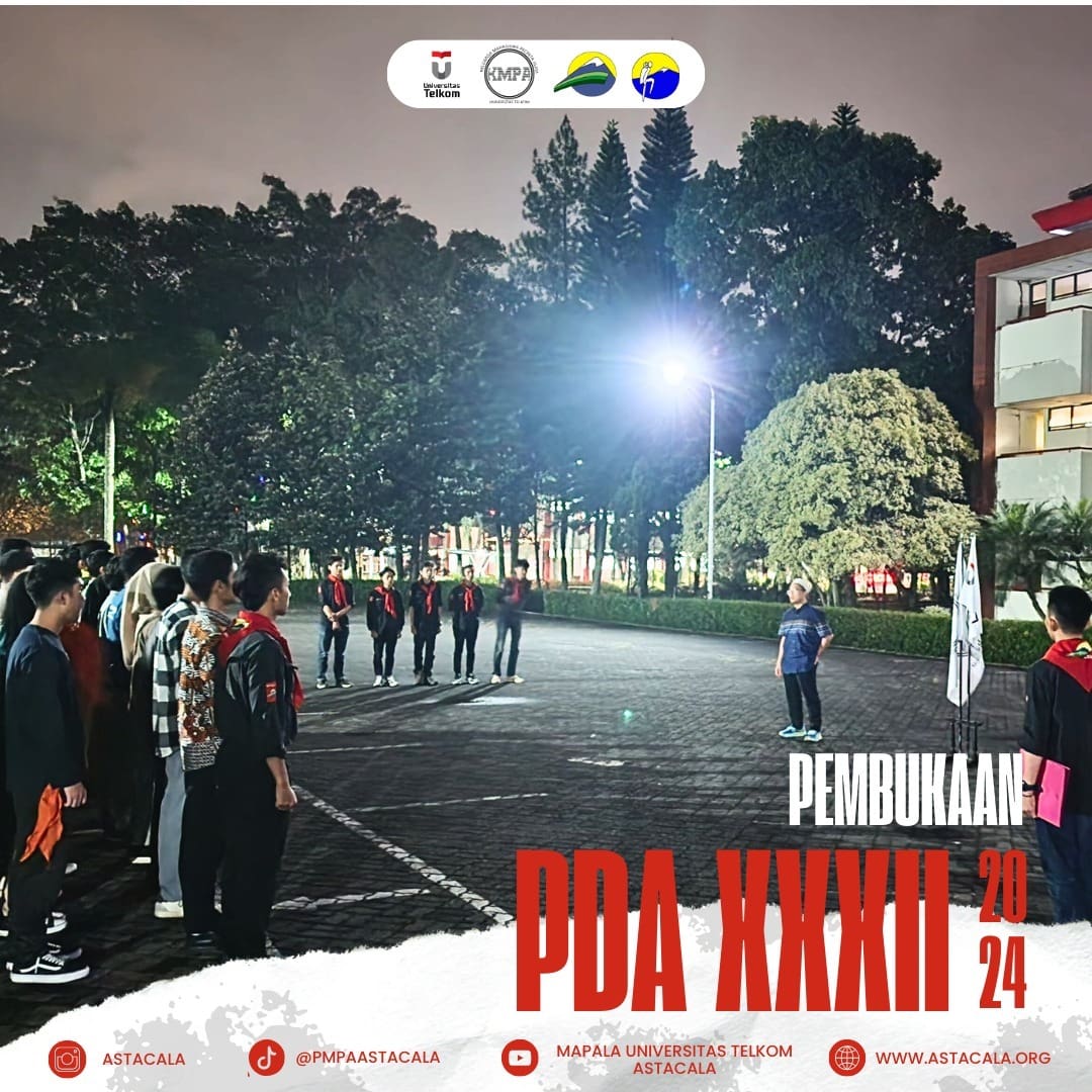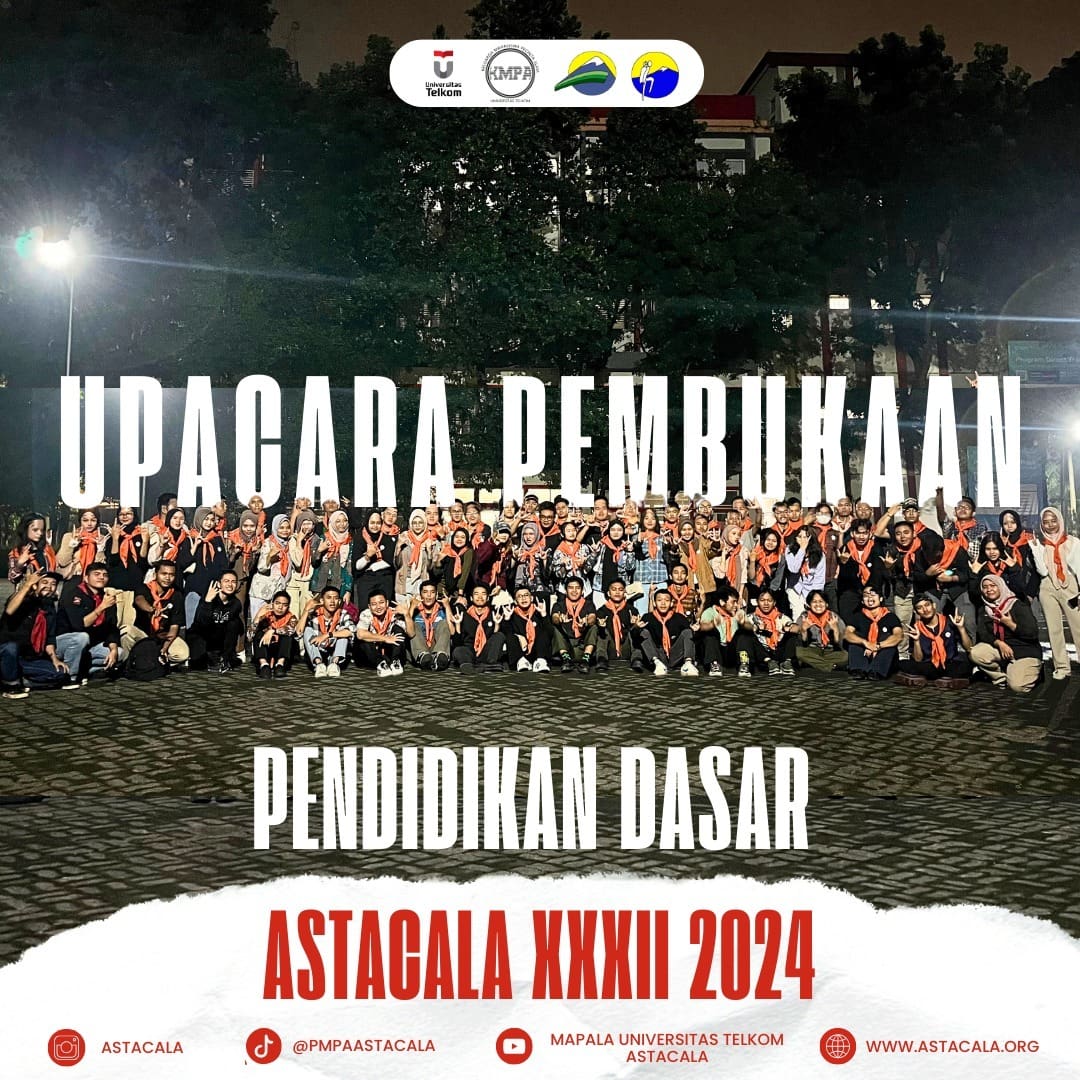 Telah resmi dibuka pada 25 Oktober 2024, Pendidikan Dasar Astacala XXXII yang bertempat di Lapangan samping Gedung Informatika Telkom University. Dengan semangat baru, para calon petualang memulai perjalanan mereka dalam menapaki setiap langkah yang penuh tantangan.