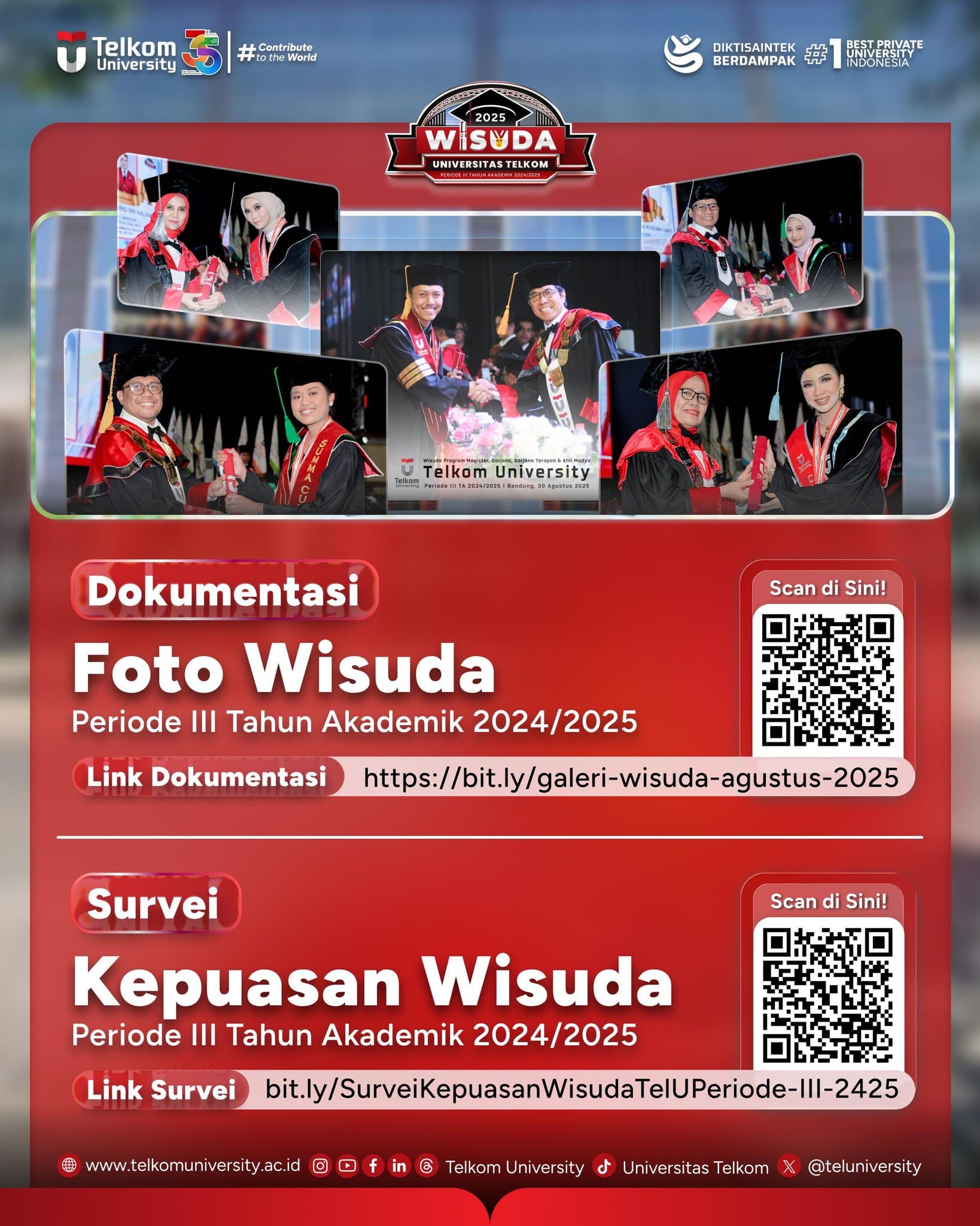 Dan wisudawan juga dianjurkan untuk mengisi survei kepuasan wisuda, pada: bit.ly/SurveiKepuasanWisudaTelUPeriode-III-2425