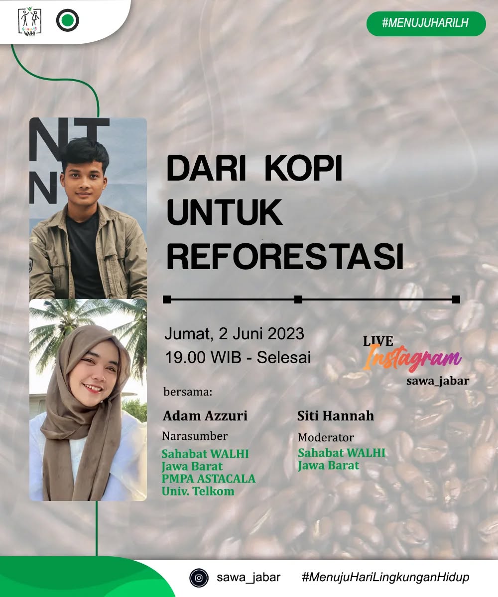 Maka reforestasi itu penting dilakukan. Salah satunya dengan menanam kopi. “Dari Kopi untuk Reforestasi” dalam diskusi kali ini, akan membahas lebih tentang bagaimana kopi ini bisa menjadi langkah yang diambil untuk reforestasi. Diskusi menarik akan dilaksanakan 2 Juni 2023 pukul 19.00 di Live Instagram kami.