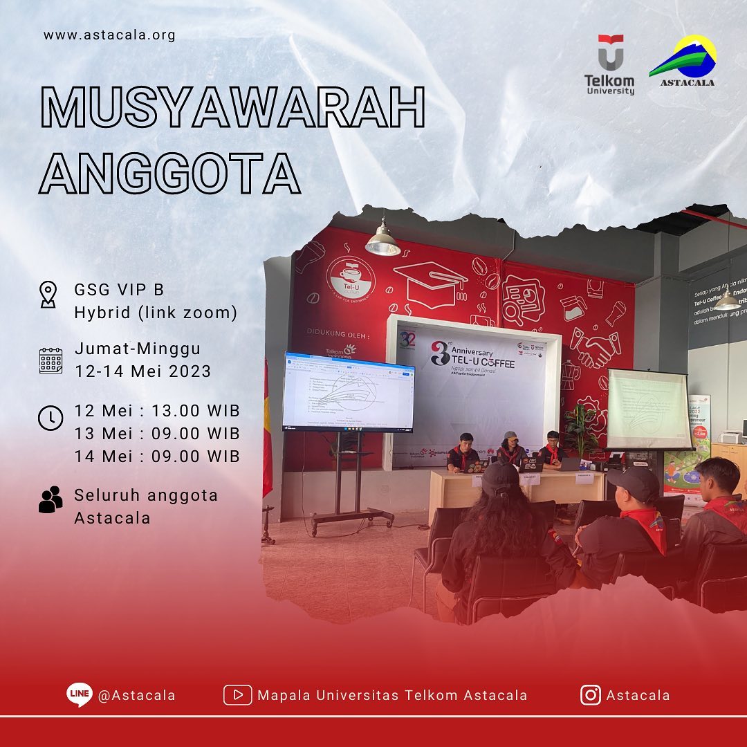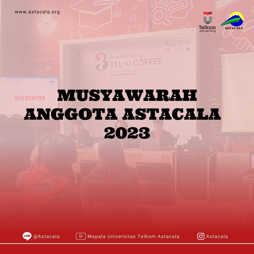 Kepengurusan dalam organisasi akan terus berganti tiap dekadenya, dari tiap tahun kepengurusan pasti terdapat tantangan yang berbeda dan juga dalam hal menyikapi tantangannya. Demi berjalanya roda organisasi maka kepengurusan akan di teruskan oleh tunas–tunas muda yang akan membawa tujuan dan nilai–nilai yang baik dalam kepengurusan berikutnya. Dengan ini Dewan Pengurus Astacala mengundang seluruh keluarga besar Astacala untuk hadir dan berpartisipasi dalam “Musyawarah Anggota Astacala 2023” yang akan di laksanakan pada :