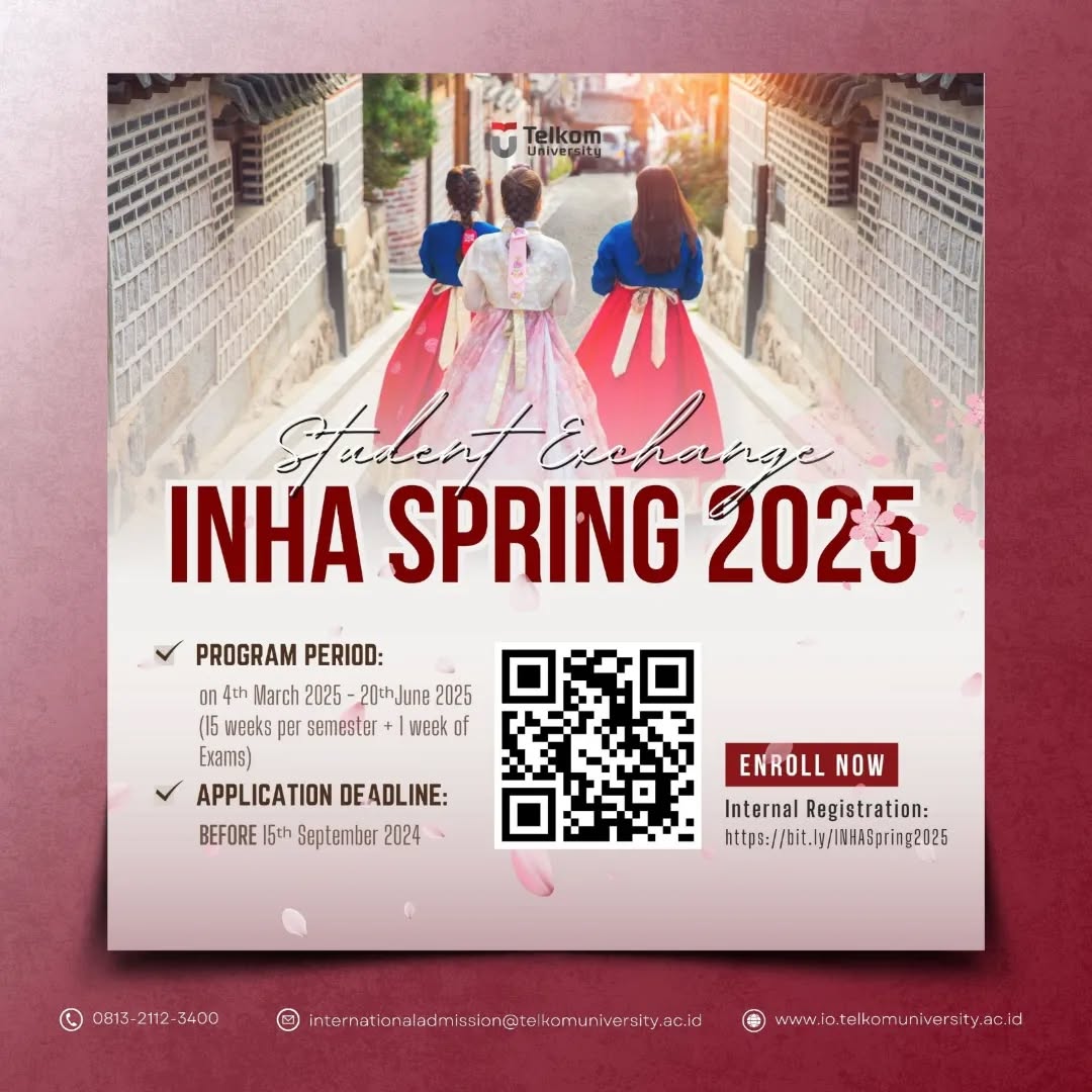 For complete information, visit our website (link in our BIO): https://io.telkomuniversity.ac.id/inha-spring-semester-2025-inha-university-south-korea/
