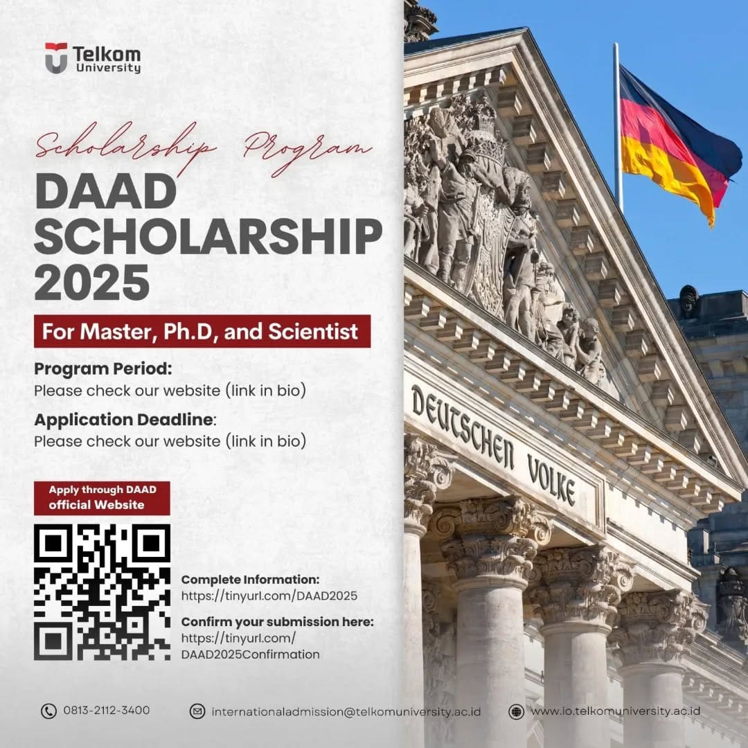 Find complete information and apply now through our website (link in our BIO): io.telkomuniversity.ac.id/daad-scholarship-2025