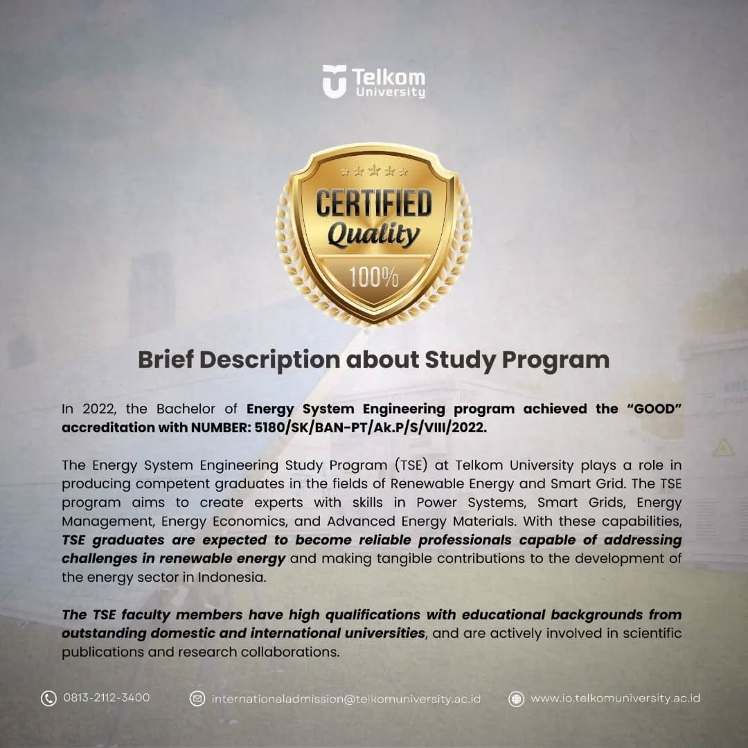 Elevate your career with the S1 Energy System Engineering Study Program at Telkom University!