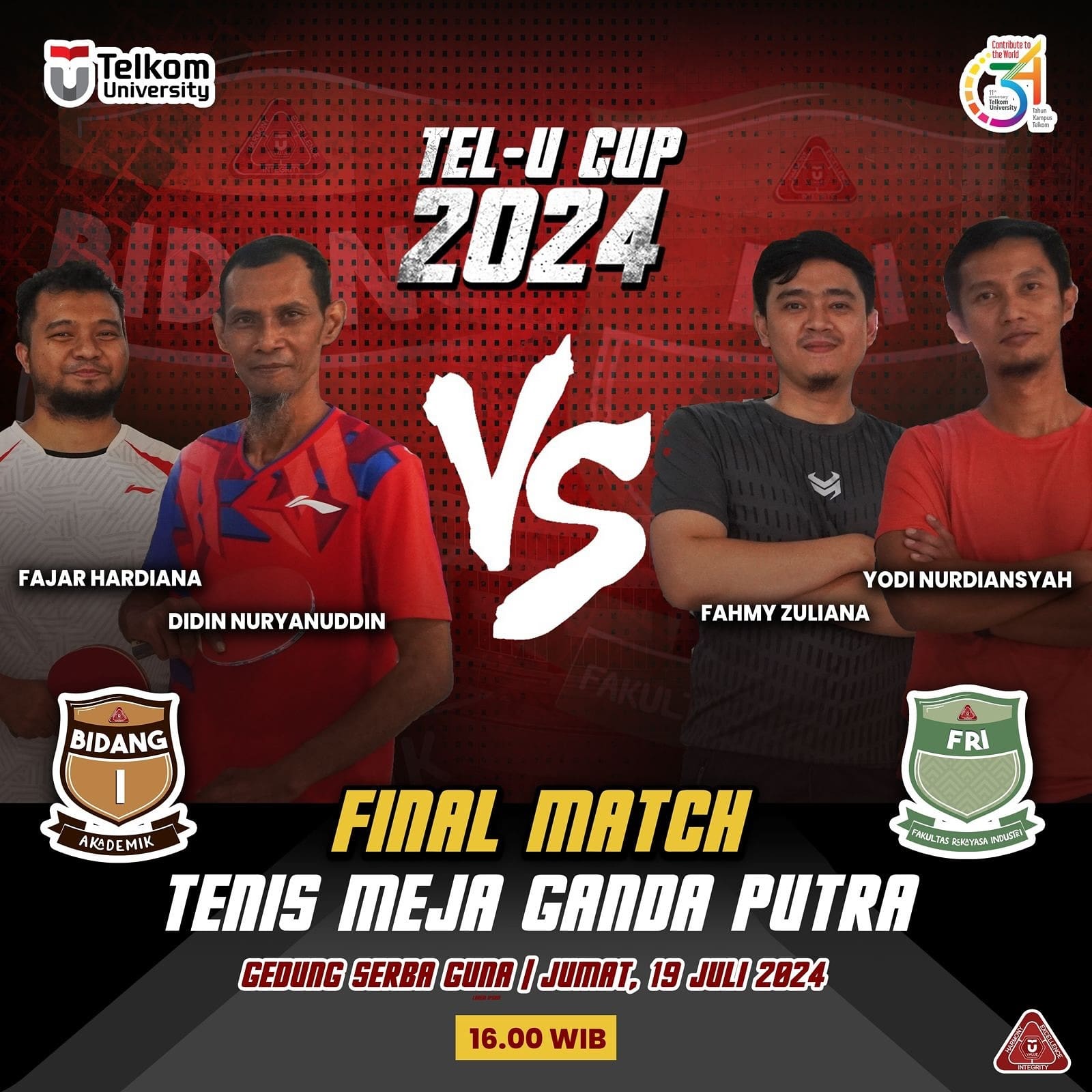 Hai TelUTizen, siapa yang akan menjadi pemenang juara 1 Tenis Meja Ganda Putra Tel-U CUP 2024 ?